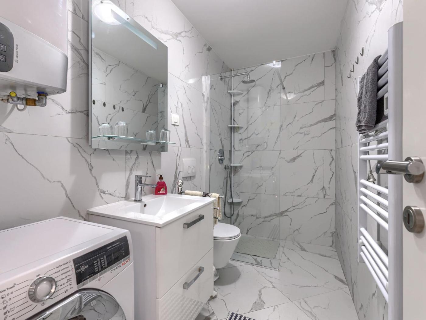 Apartament. Boasting a private entrance, this air-conditioned apartment comes with a kitchen, 2 bedrooms and 2 bathrooms with a shower and a hairdryer. In the well-fitted kitchen, guests will find a stovetop, a refrigerator, a dishwasher and kitchenware. The apartment features a coffee machine, a dining area, heating, as well as a TV with satellite channels. The unit has 2 beds. Apartament - 4 osobowy. Powierzchnia pokoju ok.: 60 mkw.