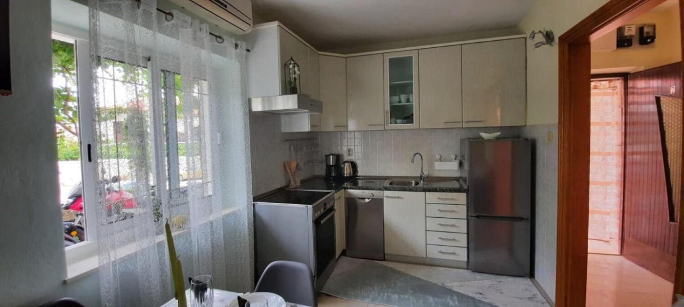 Apartament typu Standard z 2 sypialniami. This spacious apartment comes with 1 living room, 2 separate bedrooms and 1 bathroom with a hairdryer and free toiletries. Guests will find a stovetop, a refrigerator, a dishwasher and kitchenware in the kitchen. The apartment also includes a barbecue. The apartment features air conditioning, a washing machine, a private entrance as well as a terrace with sea views. The unit has 3 beds. Apartament - 6 osobowy. Powierzchnia pokoju ok.: 96 mkw. ;
