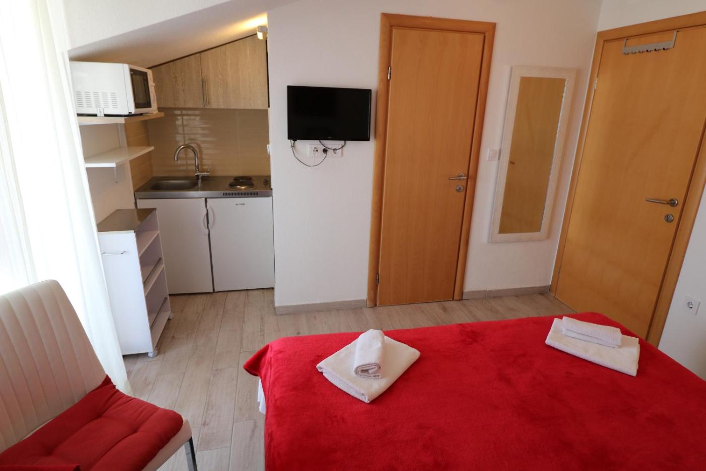 Apartament z 1 sypialnią, balkonem i widokiem na morze. Guests will have a special experience as the apartment features a hot tub. The air-conditioned apartment features 1 bedroom and 1 bathroom with a bath or a shower and a hairdryer. In the well-equipped kitchen, guests will find a stovetop, a refrigerator, a microwave and an electric kettle. Featuring a balcony with sea views, this apartment also provides a seating area and a flat-screen TV. The unit offers 1 bed. Apartament - 2 osobowy. Powierzchnia pokoju ok.: 28 mkw.