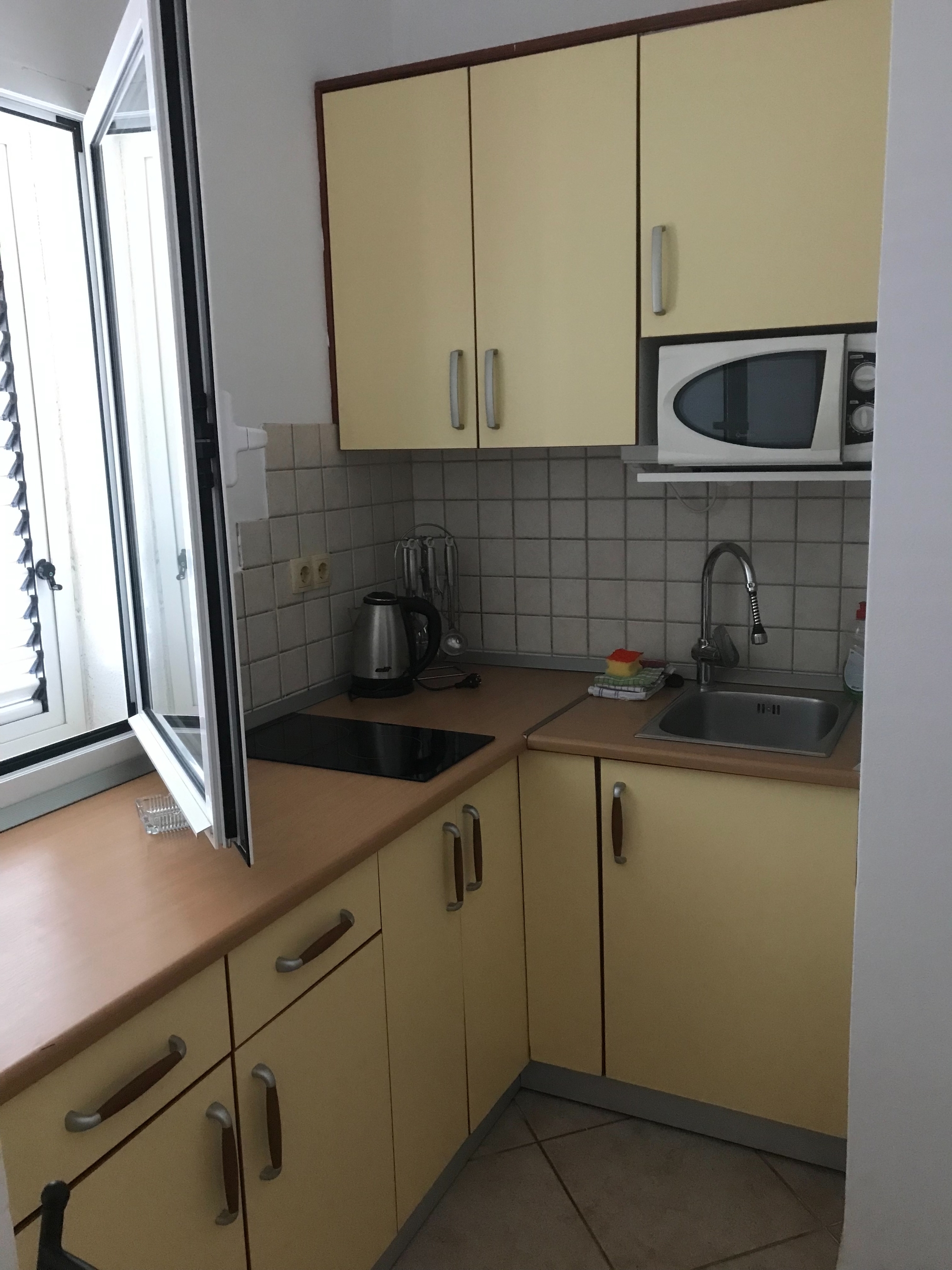 Apartament może przyjąć 2 gości. Łóżka znajdują się w sypialniach, których jest 1, na powierzchni 34m2. Goście mają dostęp do tarasu, by korzystać z ciepłych, letnich wieczorów. Z apartamentu roztacza się widok na morze. Możliwość przygotowywania posiłków poprzez korzystanie ze wspólnego grilla. W kwaterze dozwolony jest pobyt zwierzęcia domowego, za dopłatą. WLICZONE W CENĘ: taksa pobytowa, sprzątanie końcowe, klimatyzacja, parking, internet, żelazko, deska do prasowania, suszarka do włosów. OBOWIĄZKOWE KOSZTY DODATKOWE: dopłata za krótki termin (procent dopłaty w zalezności od liczby noclegów: 30% - 1, 20% - 2, 10% - 3). NIEOBOWIĄZKOWE KOSZTY DODATKOWE: zwierzęta domowe (5,00 € za nocleg), 2 łóżka dla dzieci (5,00 € osobadzień). Dostępność dodatkowych usług w rezerwowanym terminie oraz ich cenę (jeśli nie jest podana) należy sprawdzić wcześniej. Za dodatowe usługi, które nie zostały uwzględnione w kalkulacji ceny, płaci się bezpośrednio właścicielowi obiektu, pod warunkiem śe gość korzysta z tych usług. Zniżki od ceny podstawowej: bezpłatny dzień 28=25 (na pobyt na 28 dni lub więcej otrzymują Państwo 3 dni gratis na pobyt do 31.12.2026).