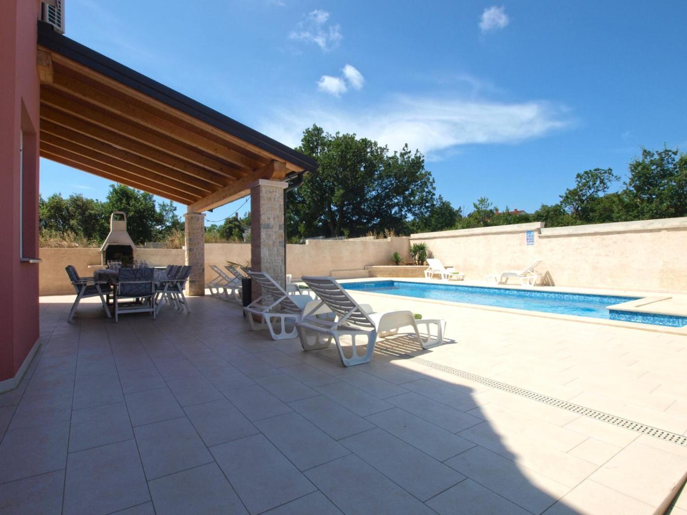 Dom wakacyjny. The private pool is the standout feature of this holiday home. Boasting a private entrance, this spacious holiday home also features 1 living room, 5 separate bedrooms and 1 bathroom with a shower. Guests will find a stovetop, a refrigerator, kitchenware and an oven in the well-fitted kitchen. The holiday home also comes with a barbecue. The air-conditioned holiday home features a TV with satellite channels, a washing machine, a coffee machine, a seating area as well as garden views. The unit has 6 beds. Dom wakacyjny - 9 osobowy. Powierzchnia pokoju ok.: 150 mkw.
