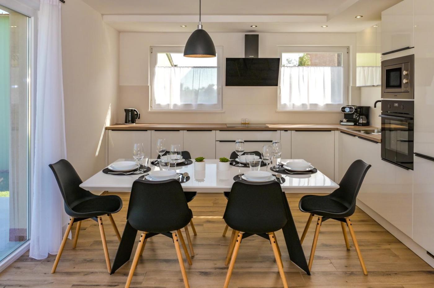 Willa znajduje się na parterze. Na miejscu zapewniono kilka sypialni (3), telewizor z płaskim ekranem z dostępem do kanałów satelitarnych oraz kuchnię z pełnym wyposażeniem, w tym lodówką, zmywarką, pralką, piekarnikiem i mikrofalówką. W willi zapewniono ręczniki i pościel.
