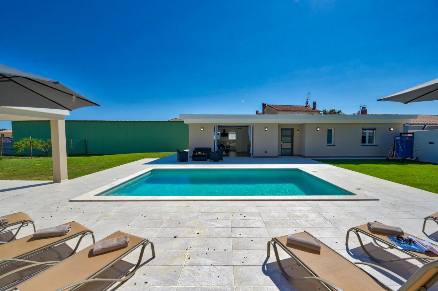 Willa z 3 sypialniami. This villa features a private pool. Guests will find a stovetop, a refrigerator, a dishwasher and an oven in the kitchen. The villa also has a barbecue. The air-conditioned villa offers a flat-screen TV with satellite channels, a washing machine, a private entrance, a tea and coffee maker as well as garden views. The unit offers 4 beds. Willa - 6 osobowy. Powierzchnia pokoju ok.: 130 mkw.