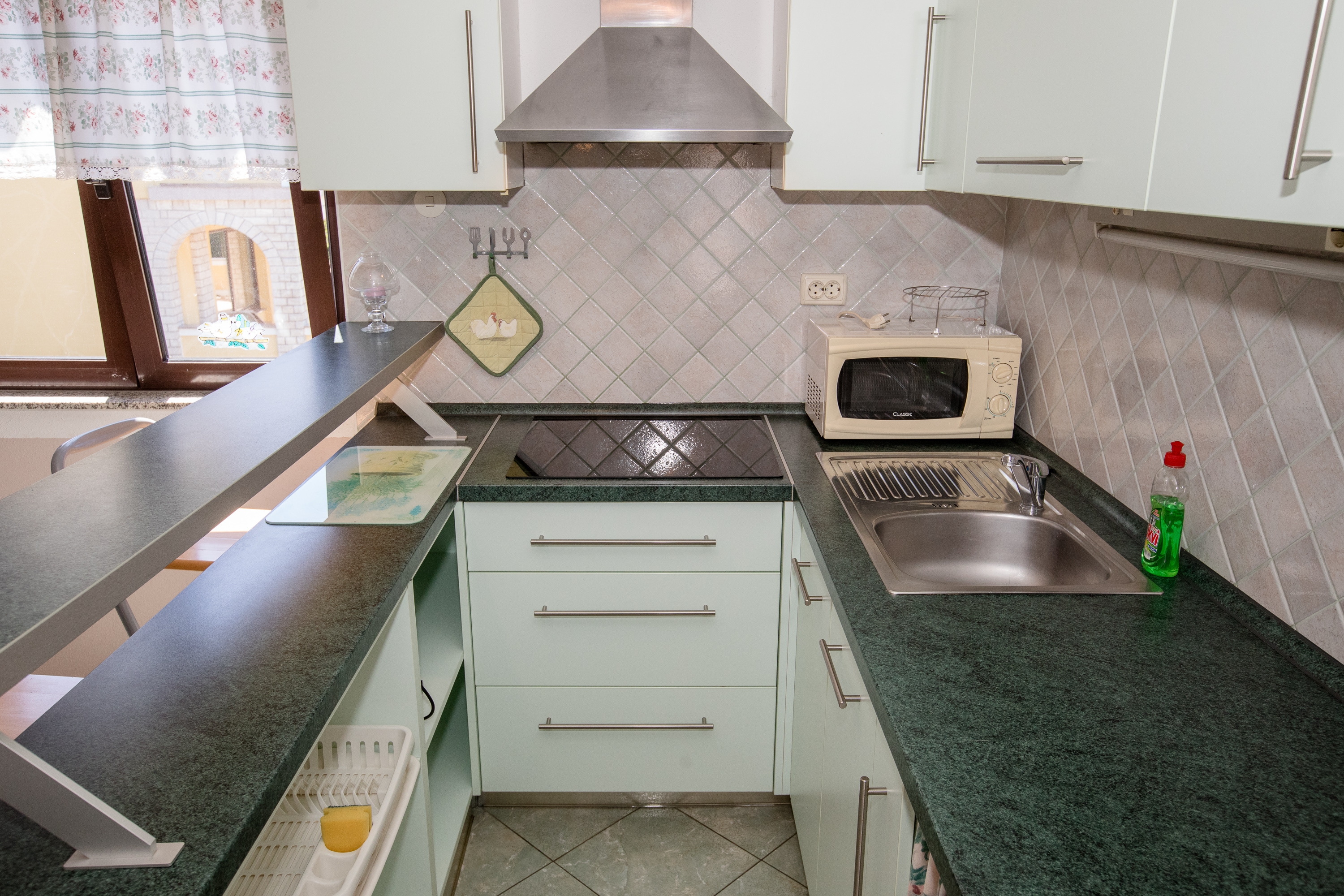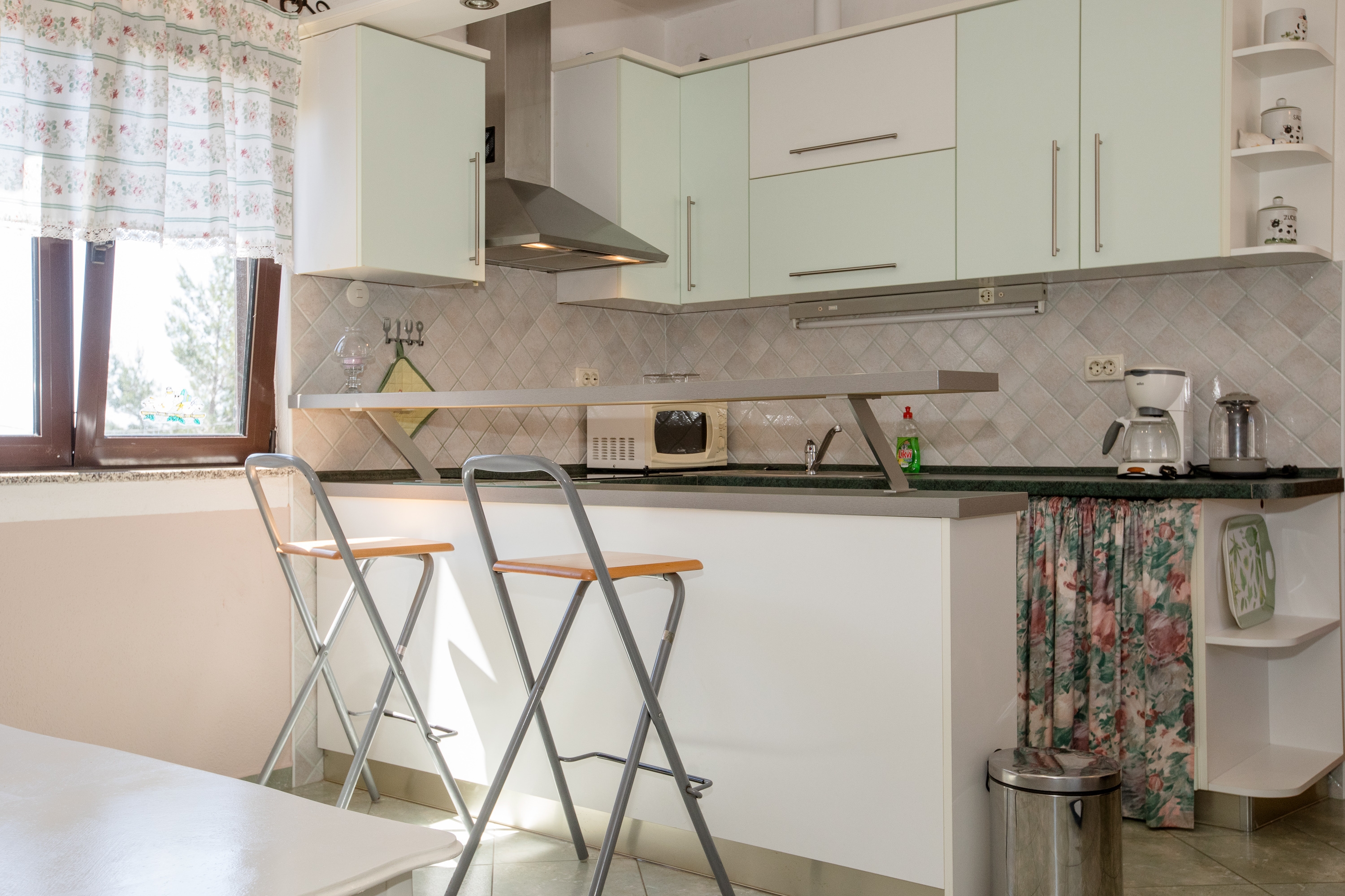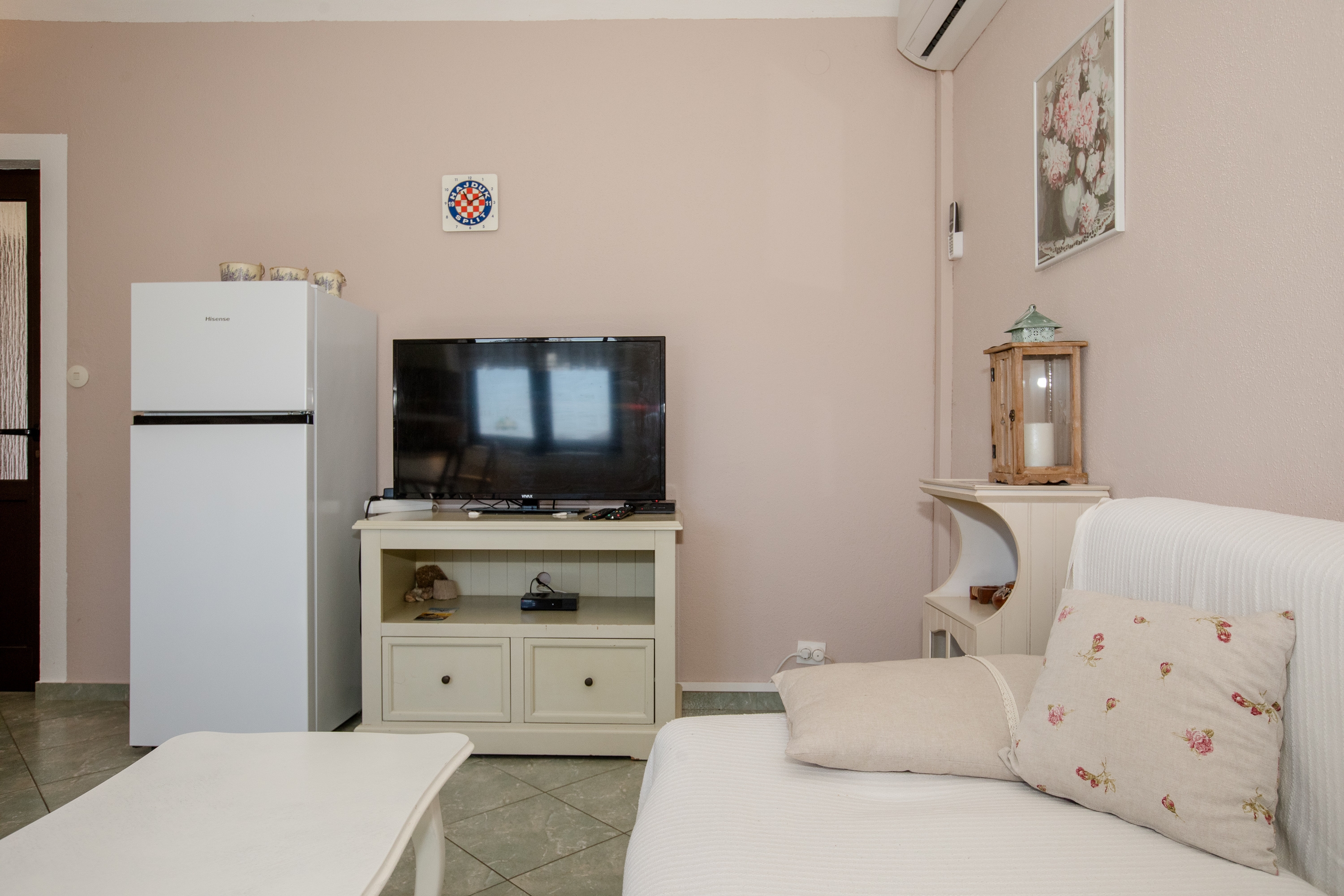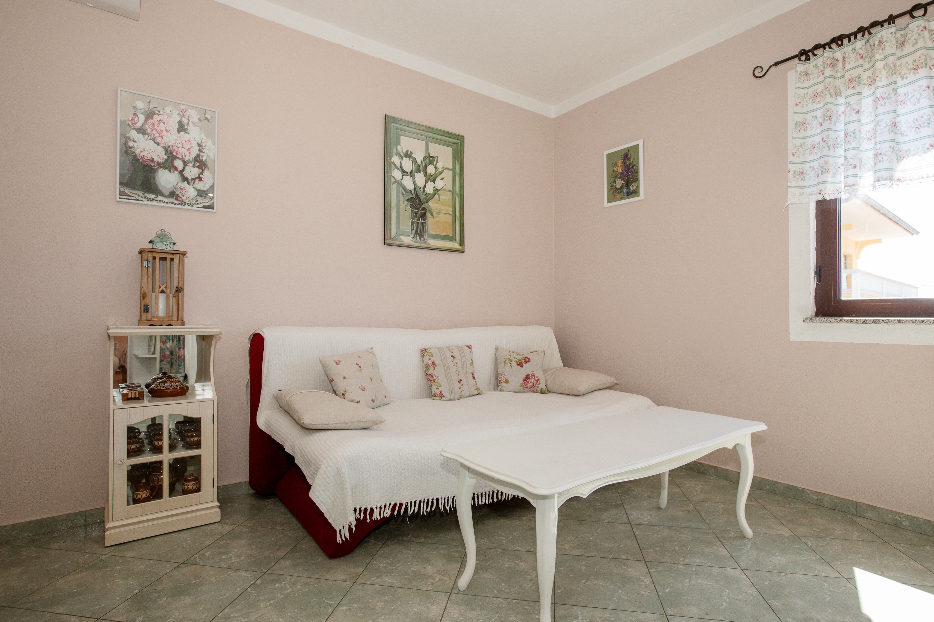 Apartament może przyjąć 4 gości. Łóżka znajdują się w sypialniach, których jest 1, oraz w pokoju dziennym, na powierzchni 35m2. Goście mają dostęp do tarasu, by korzystać z ciepłych, letnich wieczorów. Z apartamentu roztacza się widok na morze. Możliwość przygotowywania posiłków poprzez korzystanie ze wspólnego grilla. W kwaterze dozwolony jest pobyt zwierzęcia domowego, za dopłatą. WLICZONE W CENĘ: taksa pobytowa, sprzątanie końcowe, klimatyzacja, parking, internet, łóżeczko dziecięce. OBOWIĄZKOWE KOSZTY DODATKOWE: dopłata za krótki termin (procent dopłaty w zalezności od liczby noclegów: 30% - 1, 20% - 2, 10% - 3). NIEOBOWIĄZKOWE KOSZTY DODATKOWE: zwierzęta domowe (7,00 € za nocleg). Dostępność dodatkowych usług w rezerwowanym terminie oraz ich cenę (jeśli nie jest podana) należy sprawdzić wcześniej. Za dodatowe usługi, które nie zostały uwzględnione w kalkulacji ceny, płaci się bezpośrednio właścicielowi obiektu, pod warunkiem śe gość korzysta z tych usług.
