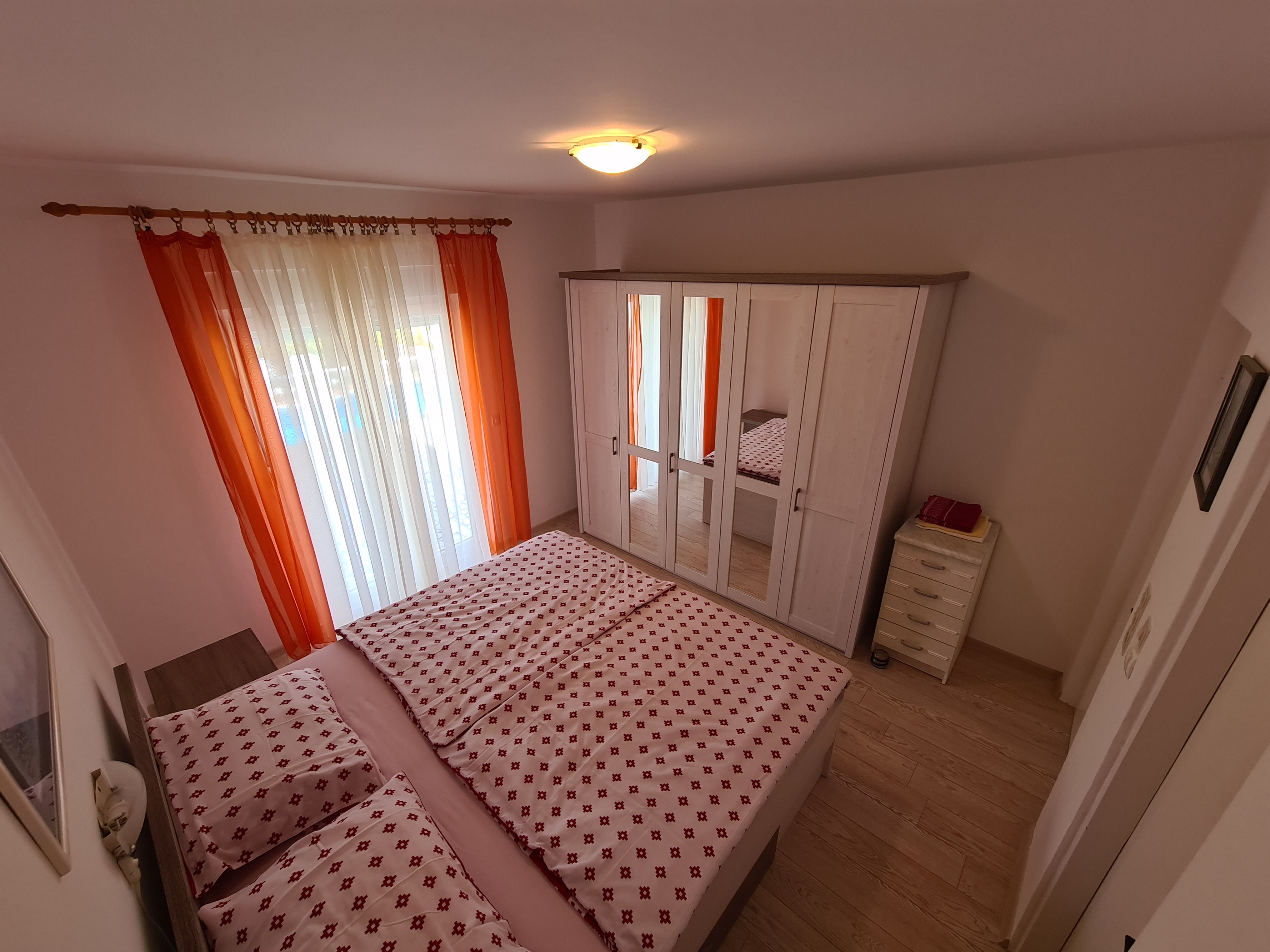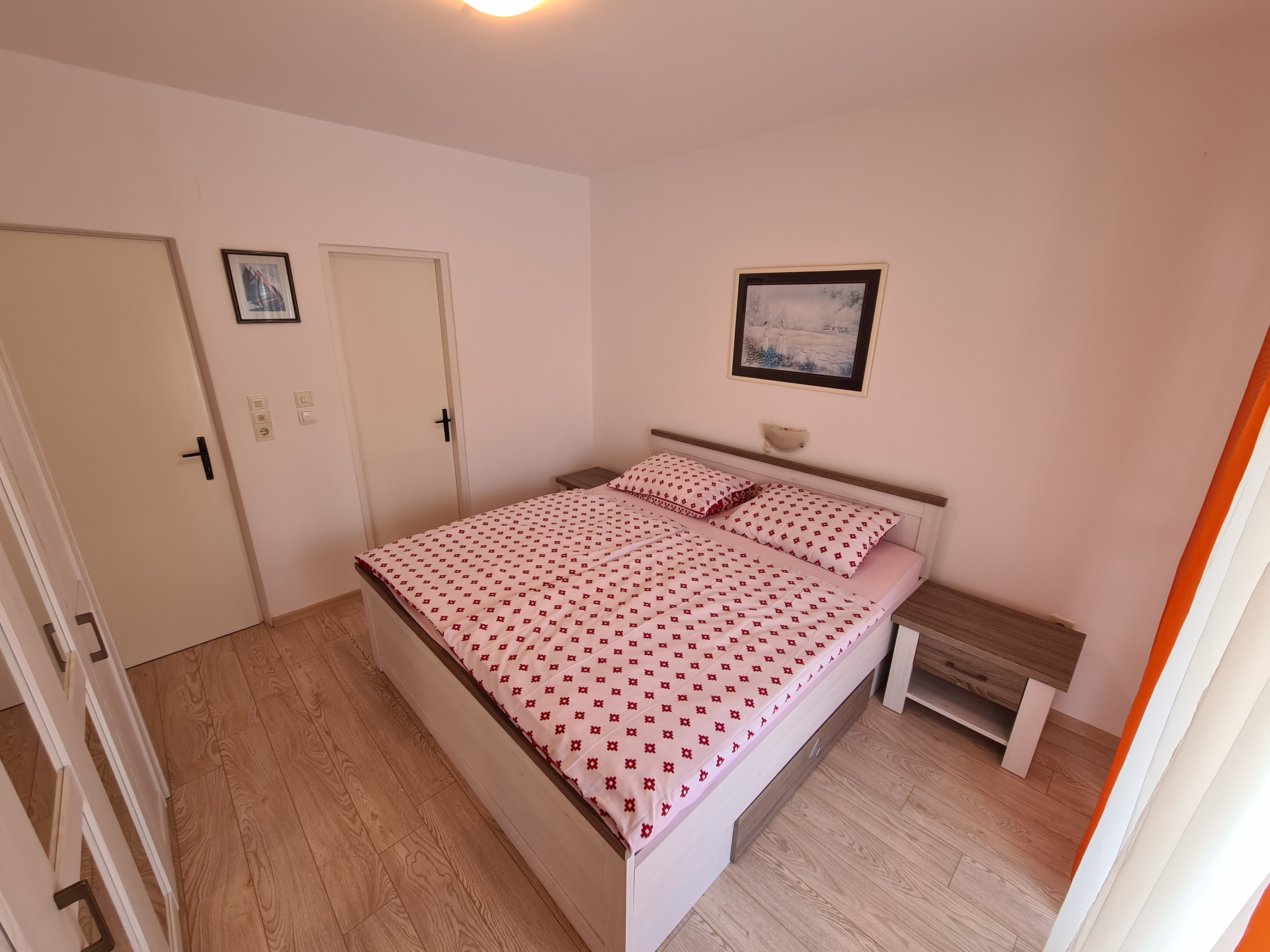 Apartament może przyjąć 5 gości. Łóżka znajdują się w sypialniach, których jest 2, oraz w pokoju dziennym, na powierzchni 62m2. Goście mają dostęp do tarasu, by korzystać z ciepłych, letnich wieczorów. Możliwość przygotowywania posiłków poprzez korzystanie ze wspólnego grilla. W trakcie swojego pobytu goście mogą korzystać ze wspólnego basenu. WLICZONE W CENĘ: taksa pobytowa, sprzątanie końcowe, basen, parking, internet, suszarka do włosów, leżaki. OBOWIĄZKOWE KOSZTY DODATKOWE: dopłata za krótki termin (procent dopłaty w zalezności od liczby noclegów: 30% - 1, 20% - 2, 10% - 3). NIEOBOWIĄZKOWE KOSZTY DODATKOWE: klimatyzacja (5,00 € za nocleg), pranie bielizny (5,00 € pranie), miejsce do cumowania łodzi (5,00 € za nocleg). Dostępność dodatkowych usług w rezerwowanym terminie oraz ich cenę (jeśli nie jest podana) należy sprawdzić wcześniej. Za dodatowe usługi, które nie zostały uwzględnione w kalkulacji ceny, płaci się bezpośrednio właścicielowi obiektu, pod warunkiem śe gość korzysta z tych usług.
