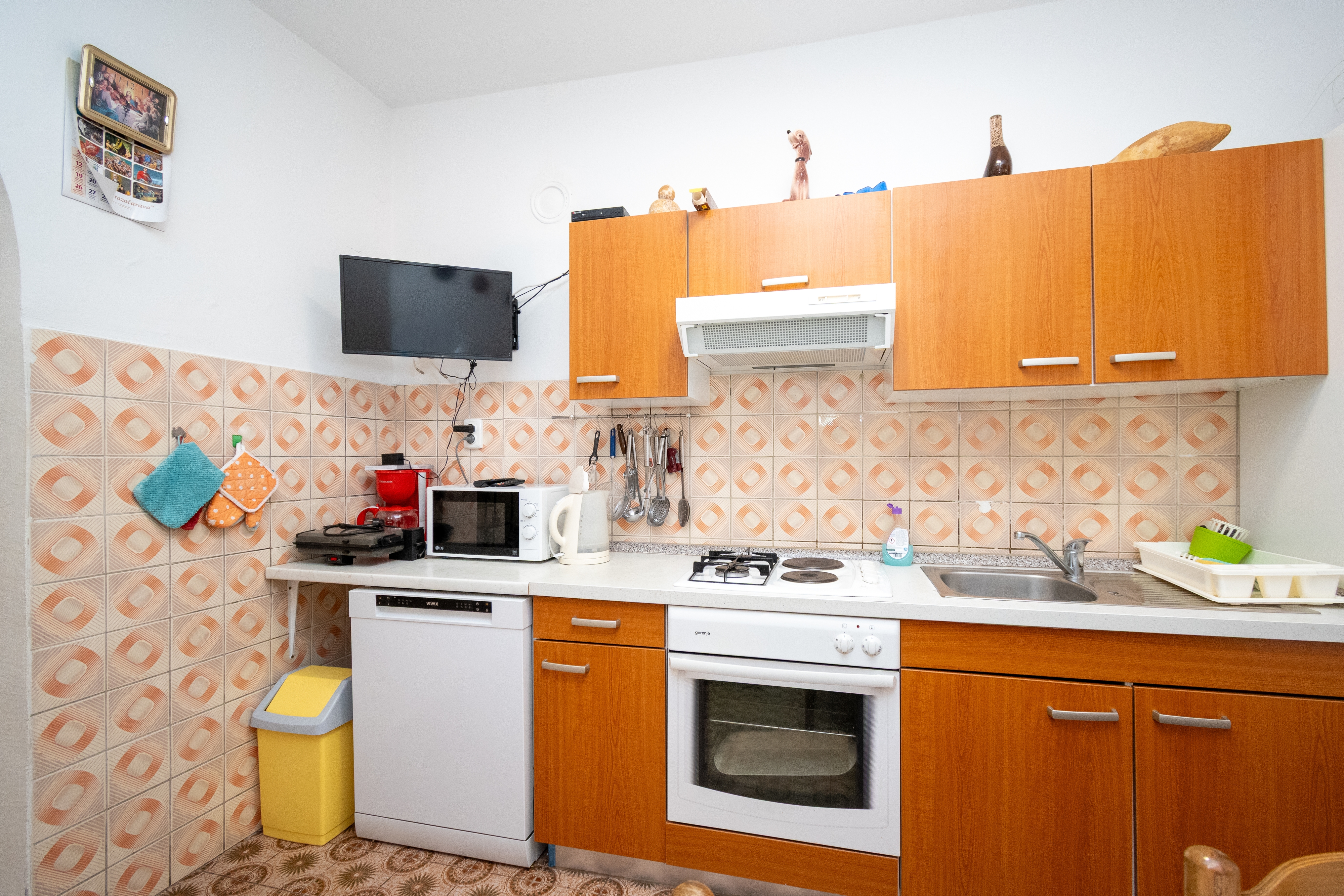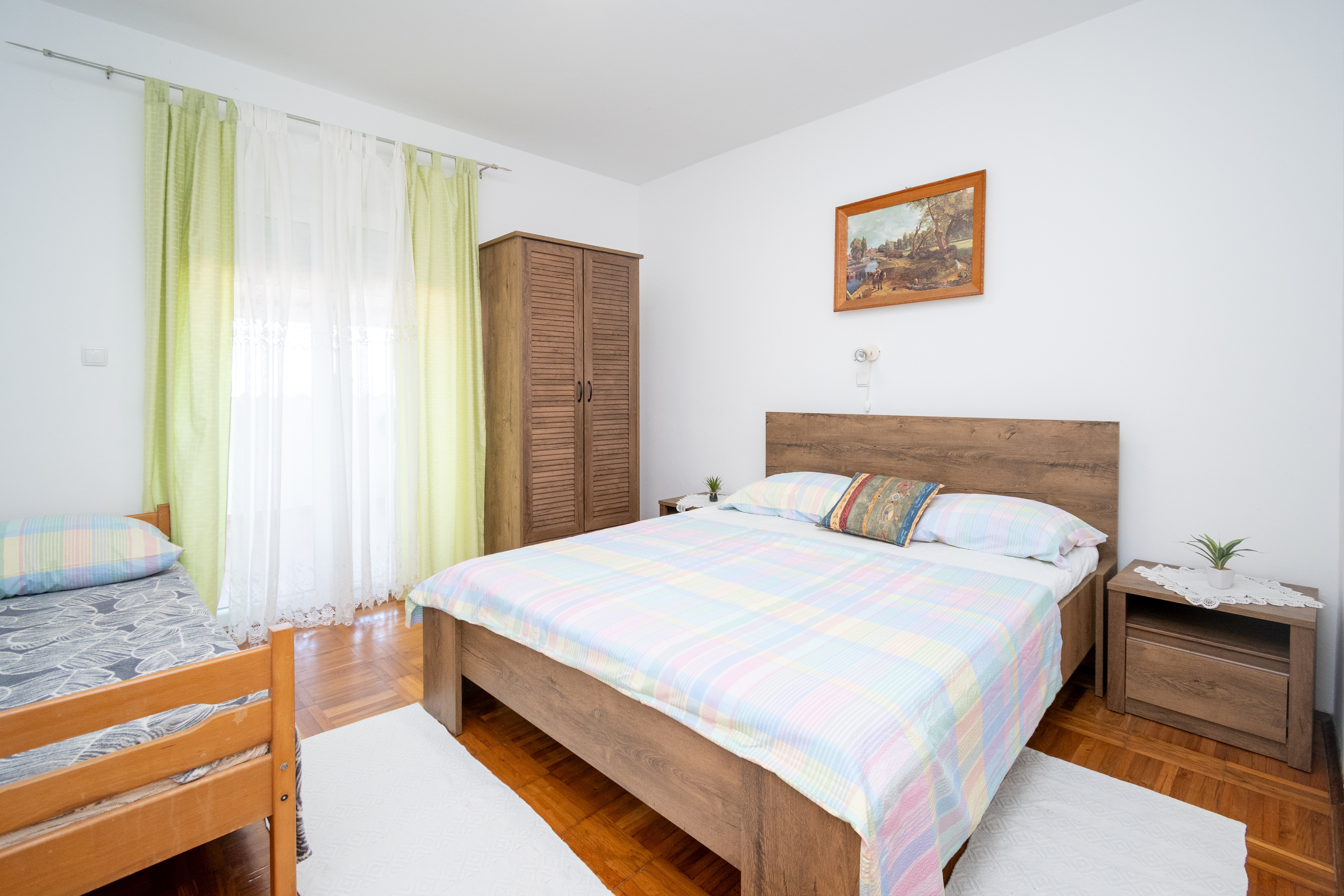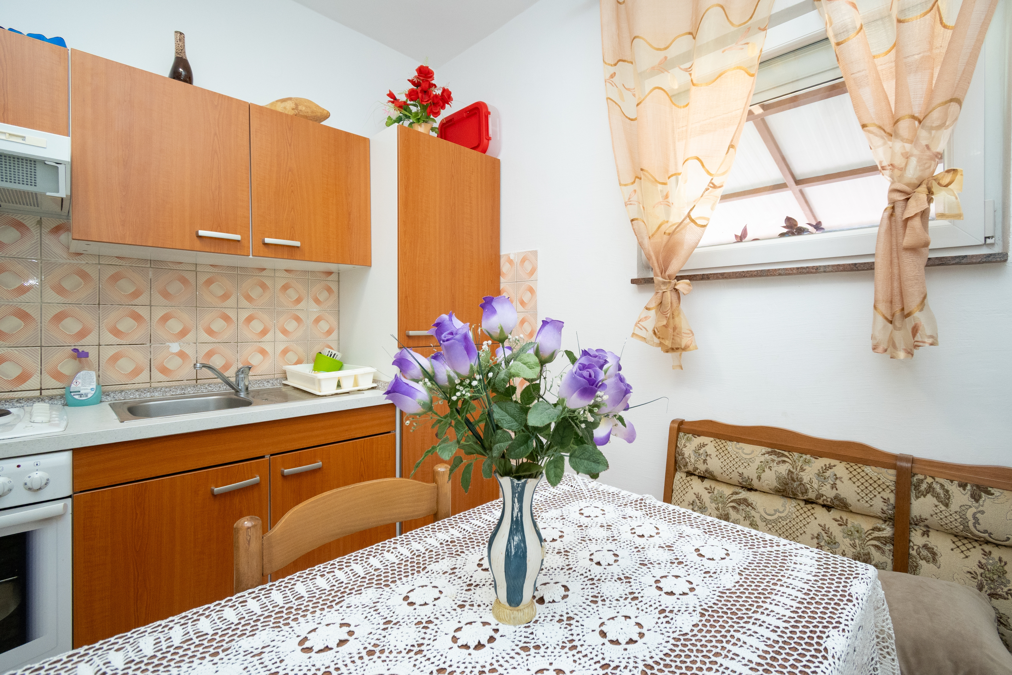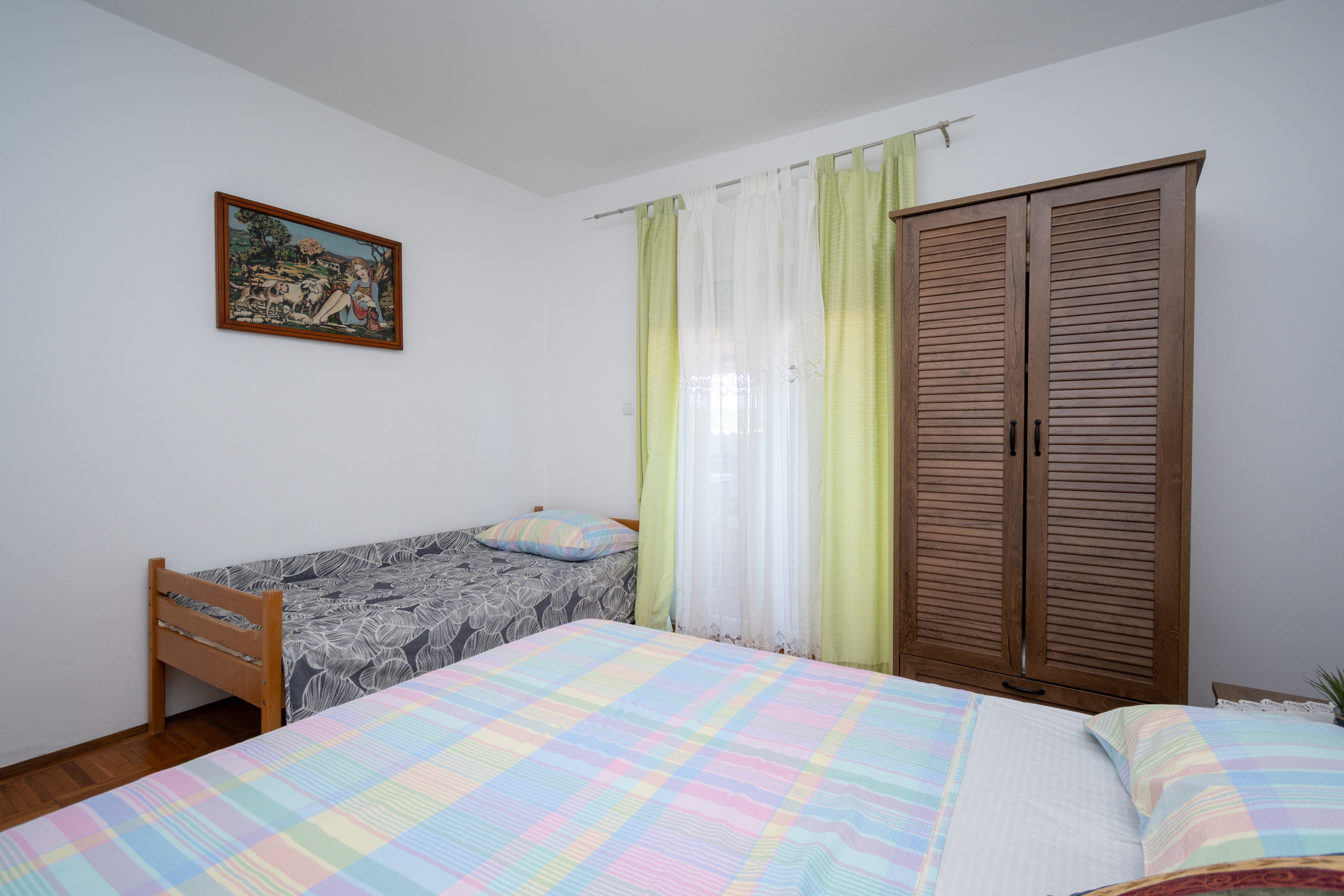 Apartament może przyjąć 5 gości. Łóżka znajdują się w sypialniach, których jest 2, na powierzchni 47m2. Goście mają dostęp do tarasu, by korzystać z ciepłych, letnich wieczorów. Z apartamentu roztacza się widok na morze. Grill jest dostępny tylko do użytku gości z tej kwatery. W kwaterze dozwolony jest pobyt zwierzęcia domowego, za dopłatą. WLICZONE W CENĘ: taksa pobytowa, sprzątanie końcowe, klimatyzacja, parking, internet, miejsce do cumowania łodzi, łóżeczko dziecięce, żelazko, deska do prasowania, suszarka do włosów. OBOWIĄZKOWE KOSZTY DODATKOWE: dopłata za krótki termin (procent dopłaty w zalezności od liczby noclegów: 30% - 1, 20% - 2, 10% - 3). NIEOBOWIĄZKOWE KOSZTY DODATKOWE: zwierzęta domowe (5,00 € za nocleg), dostawka (10,00 € za nocleg). Dostępność dodatkowych usług w rezerwowanym terminie oraz ich cenę (jeśli nie jest podana) należy sprawdzić wcześniej. Za dodatowe usługi, które nie zostały uwzględnione w kalkulacji ceny, płaci się bezpośrednio właścicielowi obiektu, pod warunkiem śe gość korzysta z tych usług.
