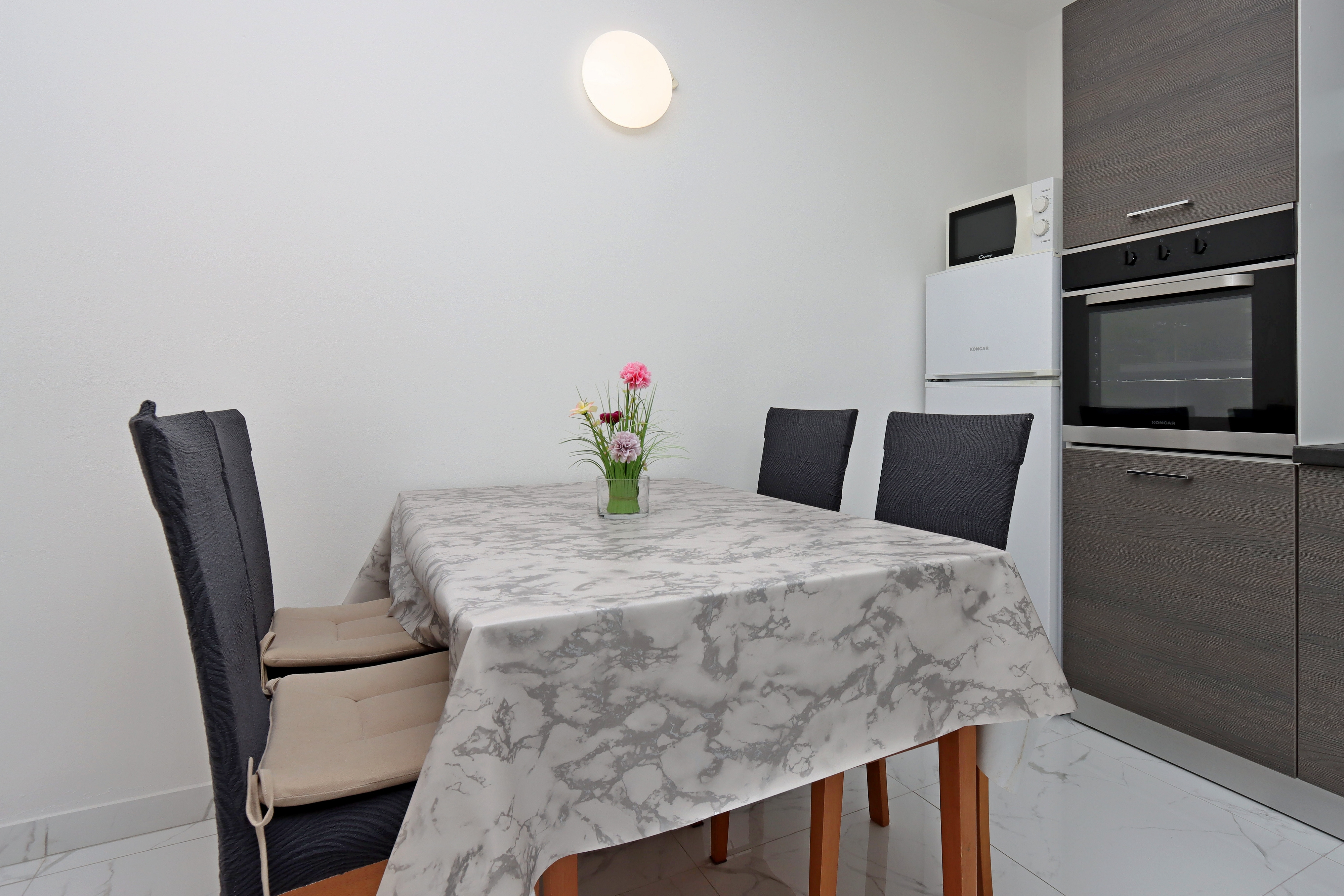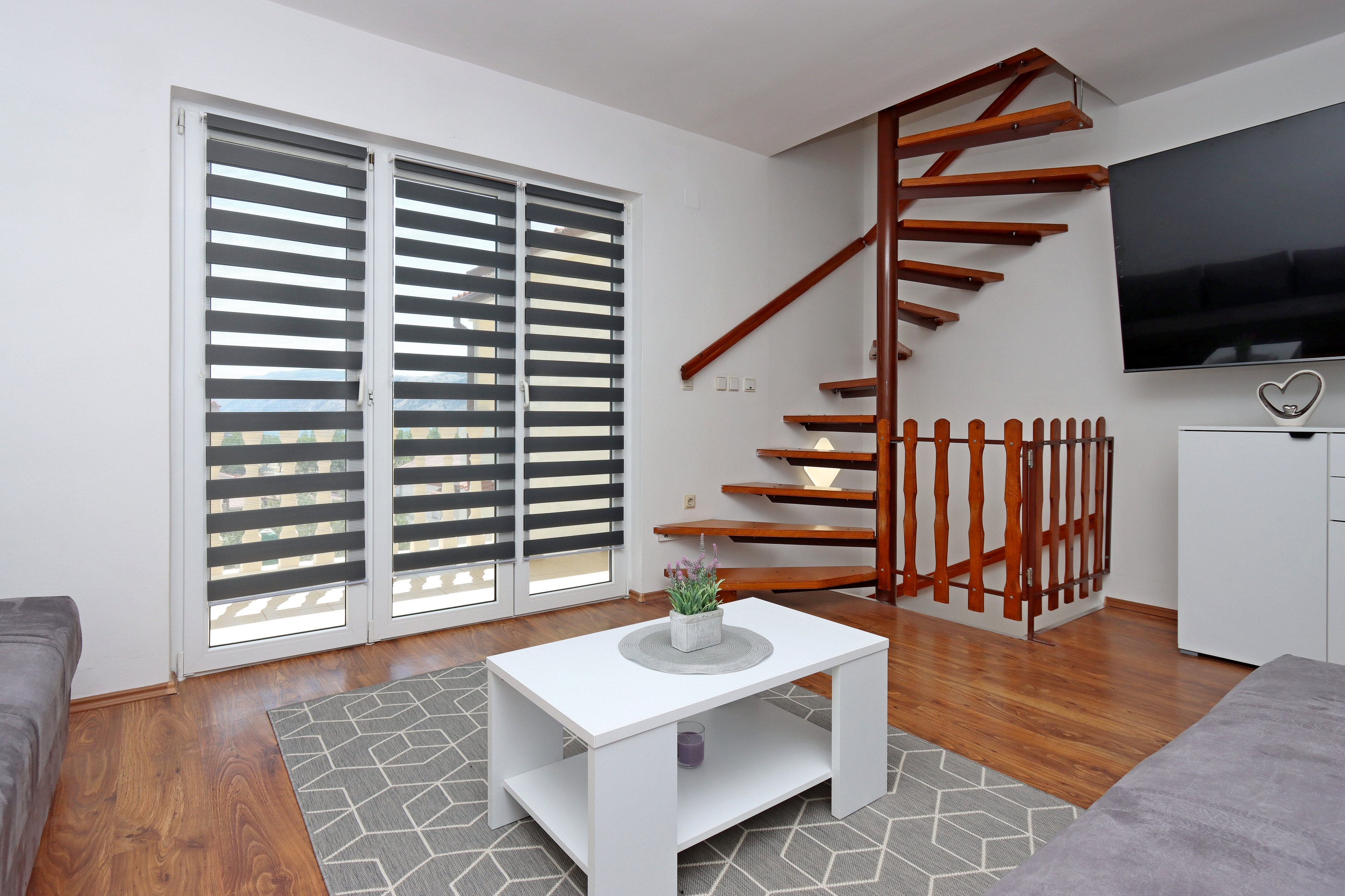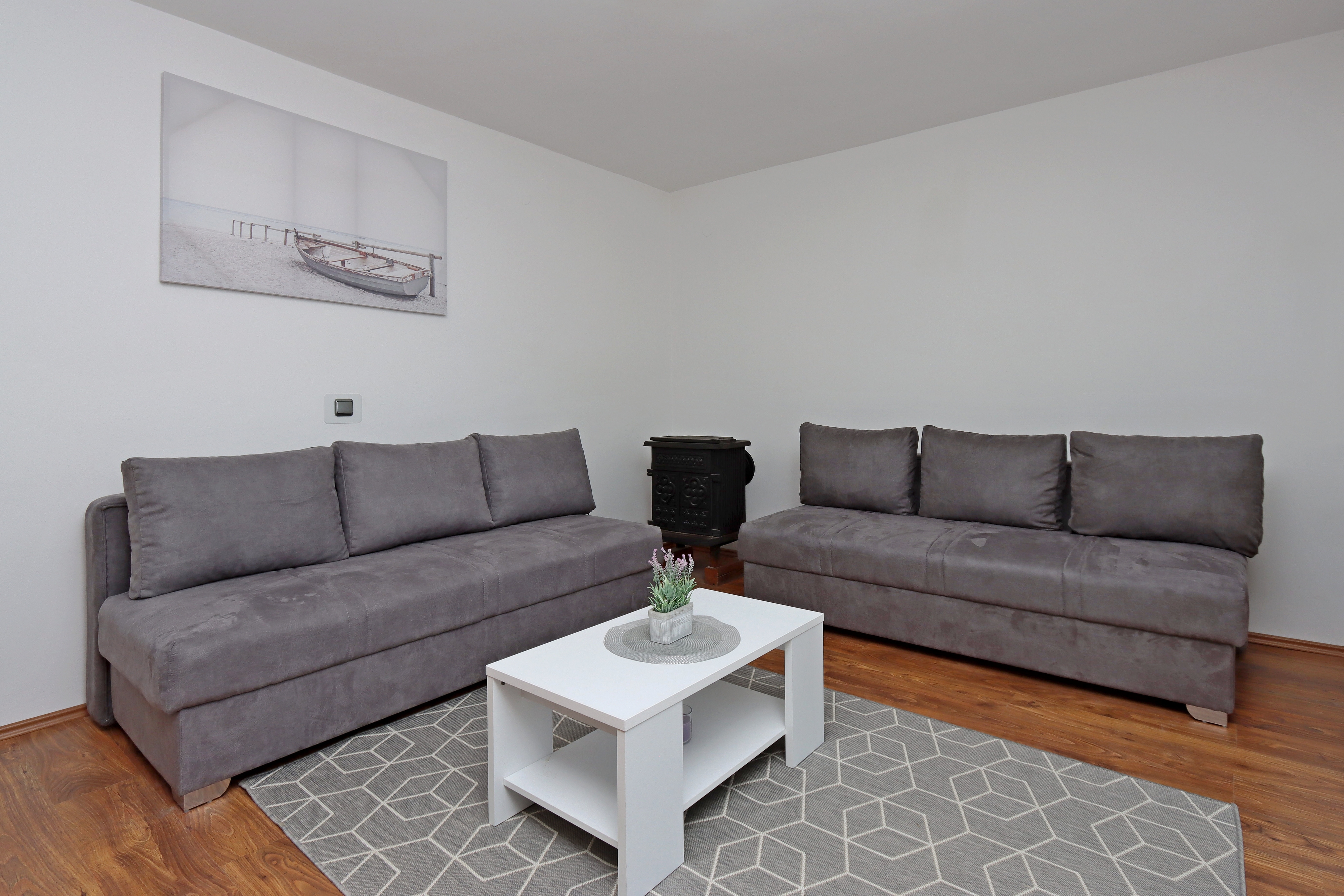 Apartament może przyjąć 5 gości. Łóżka znajdują się w sypialniach, których jest 1, oraz w pokoju dziennym, na powierzchni 53m2. Goście mają dostęp do tarasu, by korzystać z ciepłych, letnich wieczorów. Z apartamentu roztacza się widok na morze. Możliwość przygotowywania posiłków poprzez korzystanie ze wspólnego grilla. WLICZONE W CENĘ: taksa pobytowa, sprzątanie końcowe, klimatyzacja, garaż, internet, pranie bielizny, łóżeczko dziecięce. NIEOBOWIĄZKOWE KOSZTY DODATKOWE: miejsce do cumowania łodzi (20,00 € za nocleg). Dostępność dodatkowych usług w rezerwowanym terminie oraz ich cenę (jeśli nie jest podana) należy sprawdzić wcześniej. Za dodatowe usługi, które nie zostały uwzględnione w kalkulacji ceny, płaci się bezpośrednio właścicielowi obiektu, pod warunkiem śe gość korzysta z tych usług.