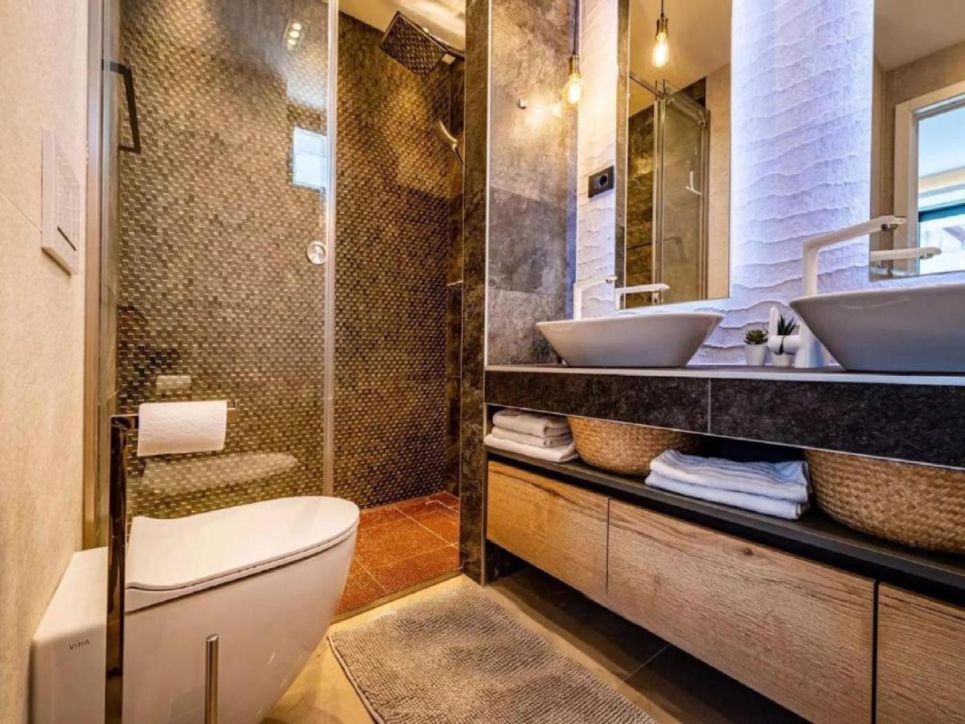 Apartament z 4 sypialniami. This villa features a private pool, hot tub and sauna. Boasting a private entrance, this air-conditioned villa includes 1 living room, 4 separate bedrooms and 6 bathrooms with a walk-in shower and a hairdryer. Guests will find a stovetop, a refrigerator, a dishwasher and kitchenware in the well-fitted kitchen. The villa also features a barbecue. The spacious villa offers a washing machine, a tea and coffee maker, a seating area, a dining area, as well as a flat-screen TV with satellite channels. The unit has 4 beds. Willa - 9 osobowy. Powierzchnia pokoju ok.: 240 mkw. ;