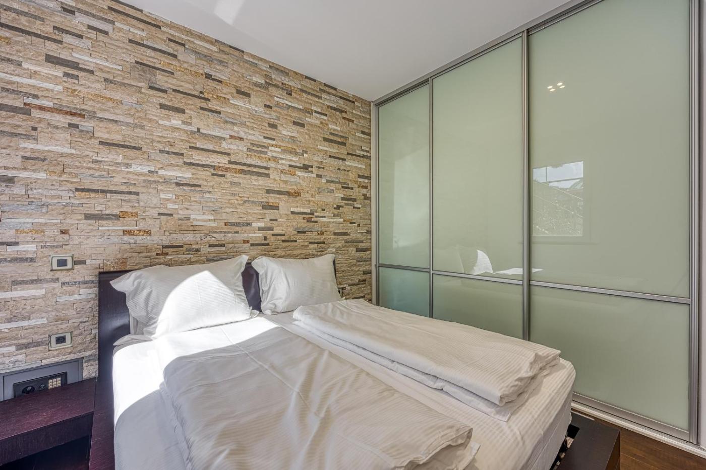 W apartamencie zapewniono taras, kilka sypialni (2), salon z telewizorem, kuchnię ze standardowym wyposażeniem, takim jak lodówka i zmywarka, a także łazienkę (1) z prysznicem. Goście mogą podziwiać widok na morze. W apartamencie zapewniono ręczniki i pościel.