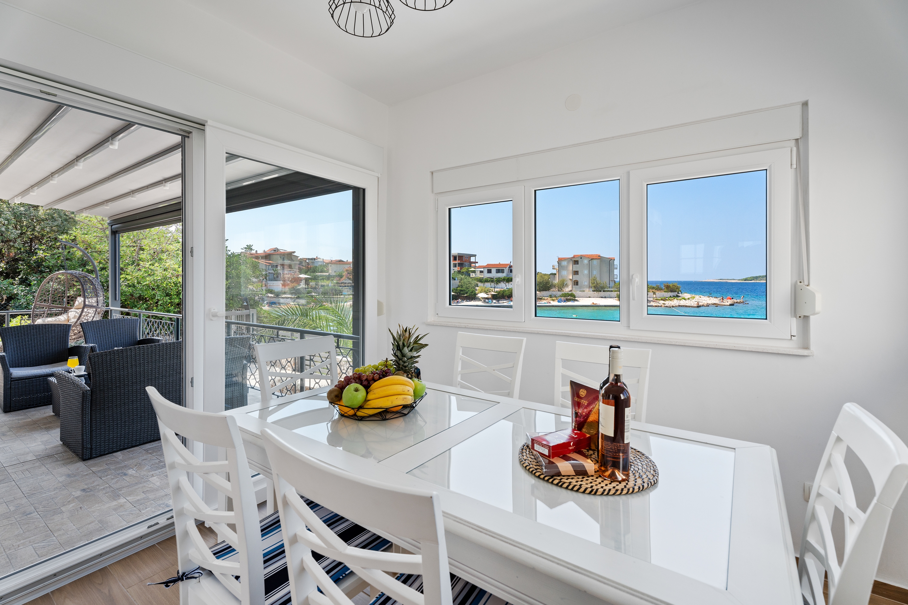 Dom może przyjąć 6 gości. Łóżka znajdują się w sypialniach, których jest 3, na powierzchni 77m2. Goście mają dostęp do tarasu, by korzystać z ciepłych, letnich wieczorów. Z domu wakacyjnego roztacza się widok na morze. Grill jest dostępny tylko do użytku gości z tej kwatery. W kwaterze dozwolony jest pobyt zwierzęcia domowego, za dopłatą. Pomieszczenia rezerwowanej kwatery nie są połączone w jedną całość. W rezerwowanej kwaterze na miejscu jest pobierana kaucja (jej wysokość jest podana na stronie). WLICZONE W CENĘ: taksa pobytowa, sprzątanie końcowe, klimatyzacja, parking, internet, łóżeczko dziecięce, żelazko, deska do prasowania, suszarka do włosów, parasol, leżaki. OBOWIĄZKOWE KOSZTY DODATKOWE: depozyt (300,00 € jednorazowo). NIEOBOWIĄZKOWE KOSZTY DODATKOWE: zwierzęta domowe (10,00 € za nocleg). Dostępność dodatkowych usług w rezerwowanym terminie oraz ich cenę (jeśli nie jest podana) należy sprawdzić wcześniej. Za dodatowe usługi, które nie zostały uwzględnione w kalkulacji ceny, płaci się bezpośrednio właścicielowi obiektu, pod warunkiem śe gość korzysta z tych usług. Zniżki od ceny podstawowej: bezpłatny dzień 14=13 (przy pobycie, trwającym co najmniej 14 dni, otrzymujecie jeden bezpłatny dzień na pobyt do 31.12.2026), promocyjna (przy rezerwacji zrealizujcie dodatkową zniżkę 10%).