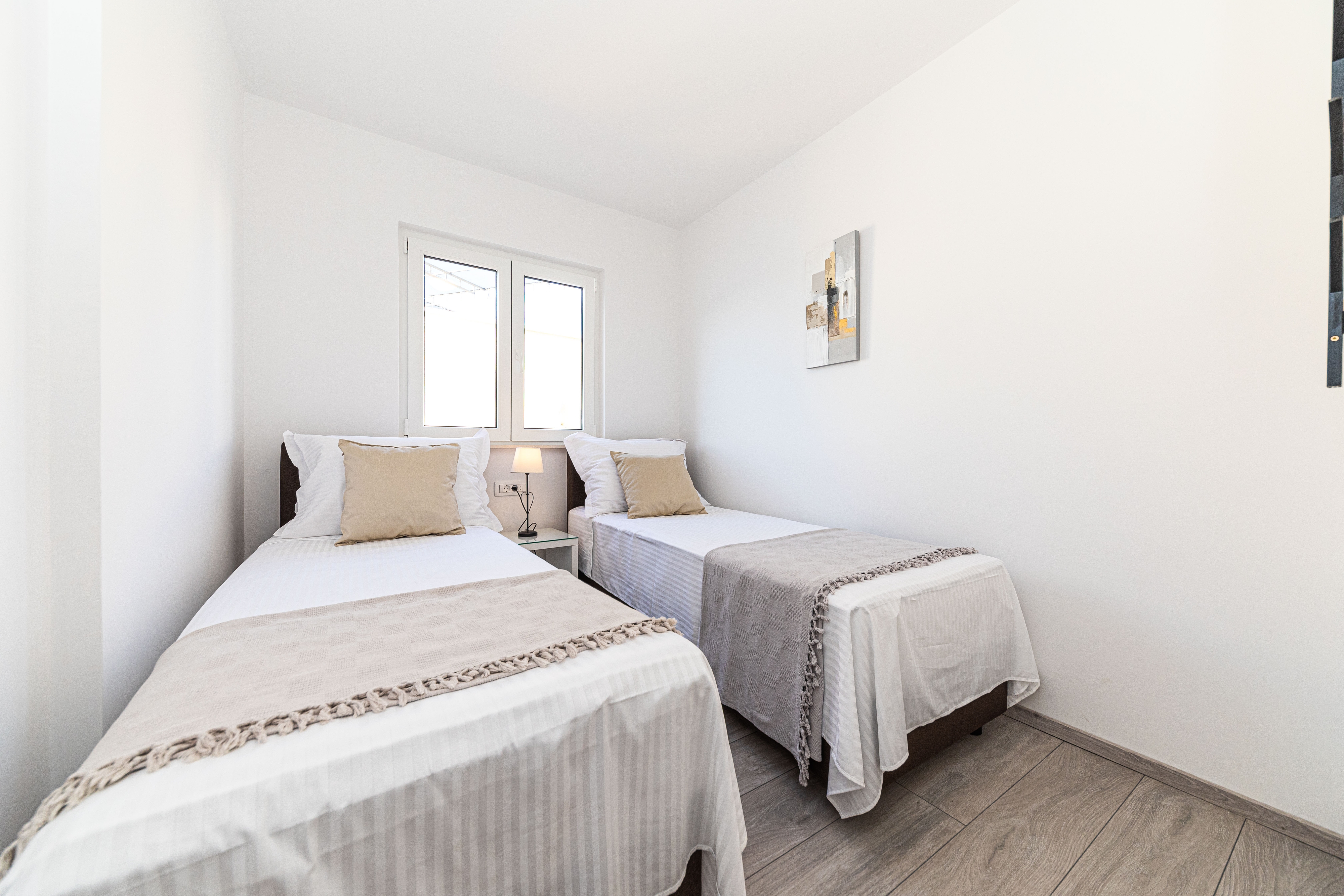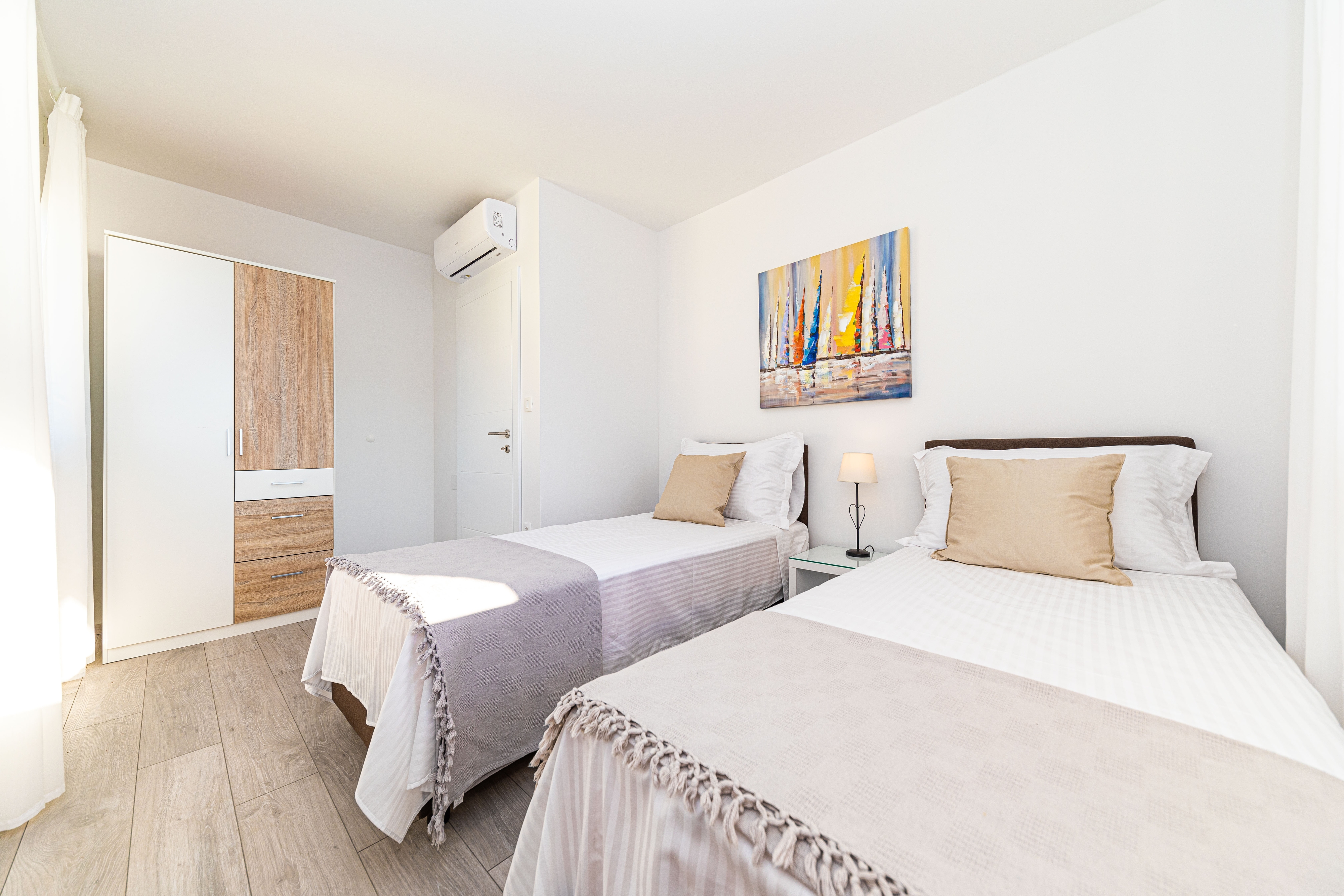 Apartament może przyjąć 8 gości. Łóżka znajdują się w sypialniach, których jest 4, na powierzchni 108m2. Goście mają dostęp do tarasu, by korzystać z ciepłych, letnich wieczorów. Z apartamentu roztacza się widok na morze. Grill jest dostępny tylko do użytku gości z tej kwatery. W trakcie swojego pobytu goście mogą zrelakswować się w prywatnym basenie. WLICZONE W CENĘ: taksa pobytowa, sprzątanie końcowe, klimatyzacja, basen, parking, internet, miejsce do cumowania łodzi. OBOWIĄZKOWE KOSZTY DODATKOWE: dopłata za krótki termin (procent dopłaty w zalezności od liczby noclegów: 30% - 1, 20% - 2, 10% - 3). Dostępność dodatkowych usług w rezerwowanym terminie oraz ich cenę (jeśli nie jest podana) należy sprawdzić wcześniej. Za dodatowe usługi, które nie zostały uwzględnione w kalkulacji ceny, płaci się bezpośrednio właścicielowi obiektu, pod warunkiem śe gość korzysta z tych usług.