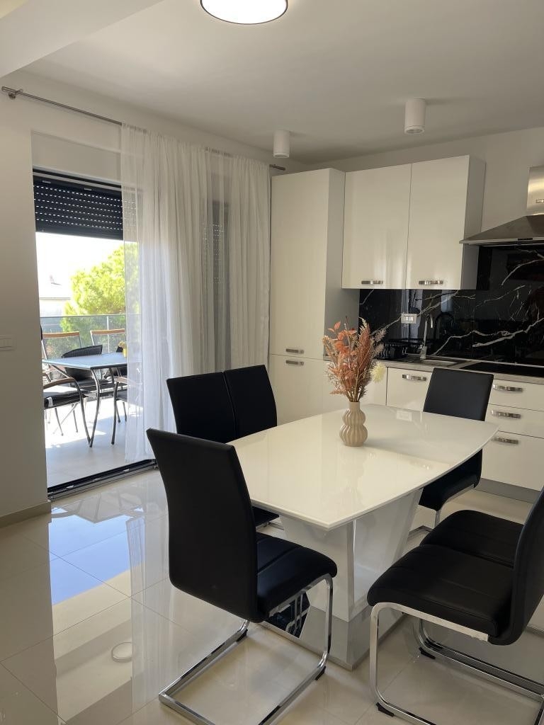 Apartament może przyjąć 4 gości. Łóżka znajdują się w sypialniach, których jest 2, na powierzchni 65m2. Goście mają dostęp do tarasu, by korzystać z ciepłych, letnich wieczorów. Z apartamentu roztacza się widok na morze. WLICZONE W CENĘ: taksa pobytowa, sprzątanie końcowe, klimatyzacja, parking, internet, żelazko, deska do prasowania, suszarka do włosów. Dostępność dodatkowych usług w rezerwowanym terminie oraz ich cenę (jeśli nie jest podana) należy sprawdzić wcześniej. Za dodatowe usługi, które nie zostały uwzględnione w kalkulacji ceny, płaci się bezpośrednio właścicielowi obiektu, pod warunkiem śe gość korzysta z tych usług. Zniżki od ceny podstawowej: bezpłatny dzień 14=13 (przy pobycie, trwającym co najmniej 14 dni, otrzymujecie jeden bezpłatny dzień na pobyt do 31.12.2026).