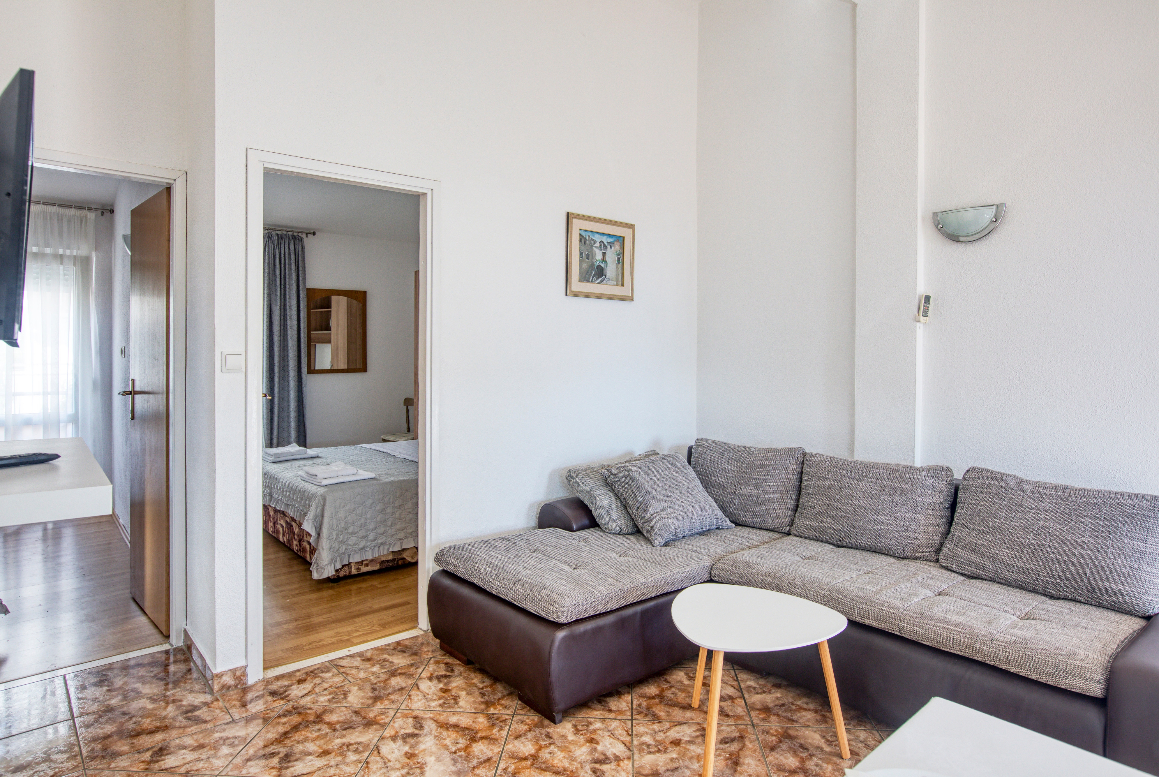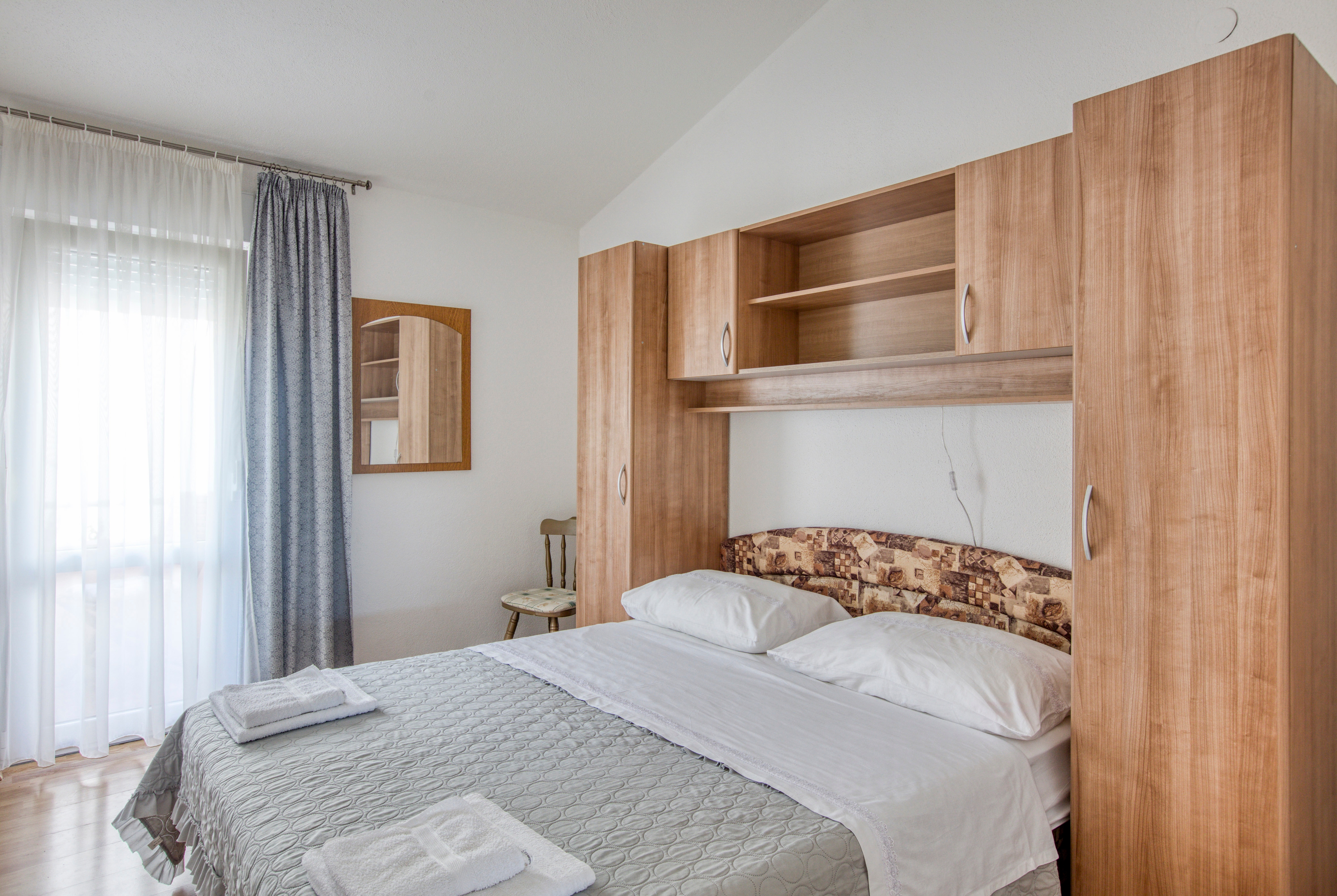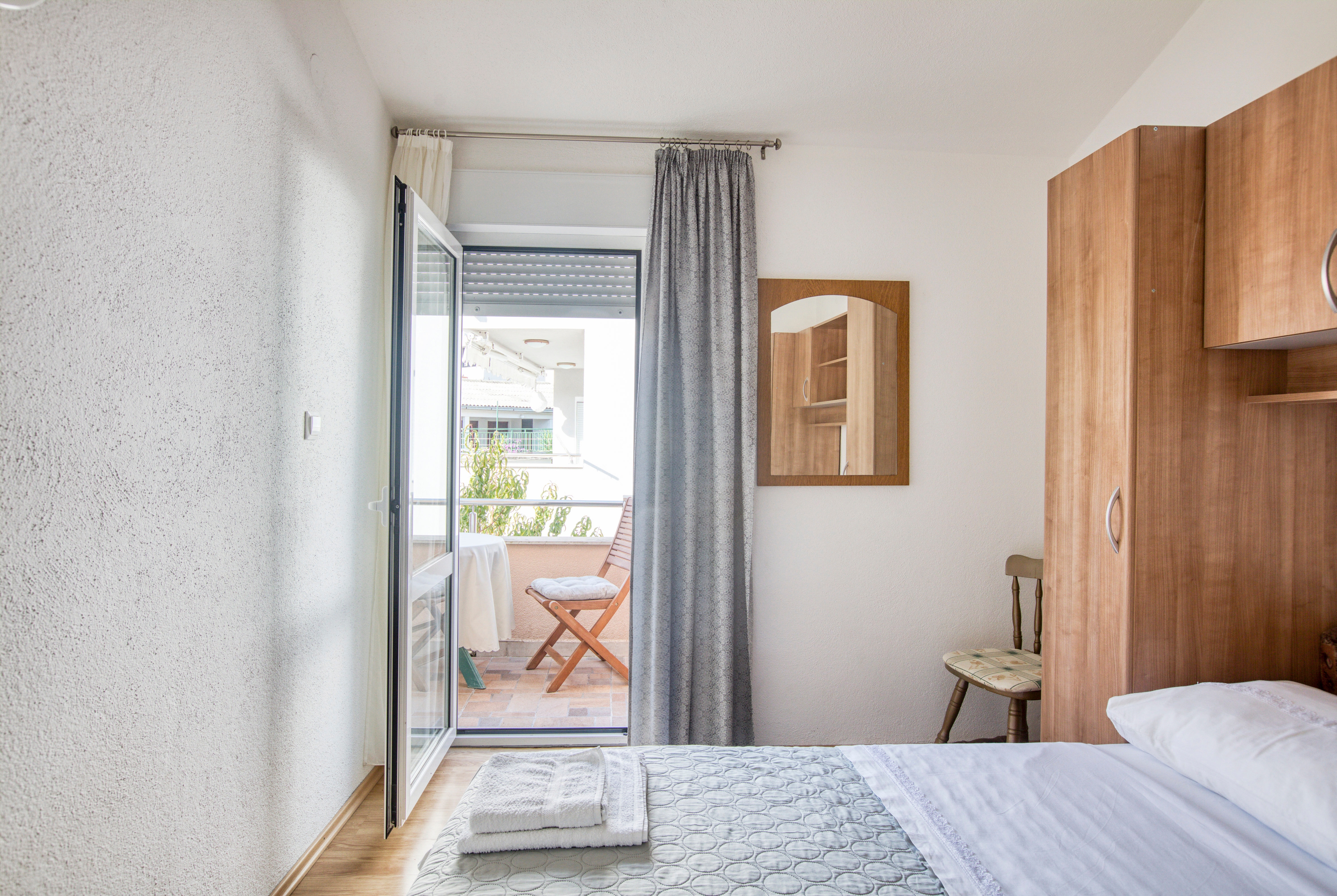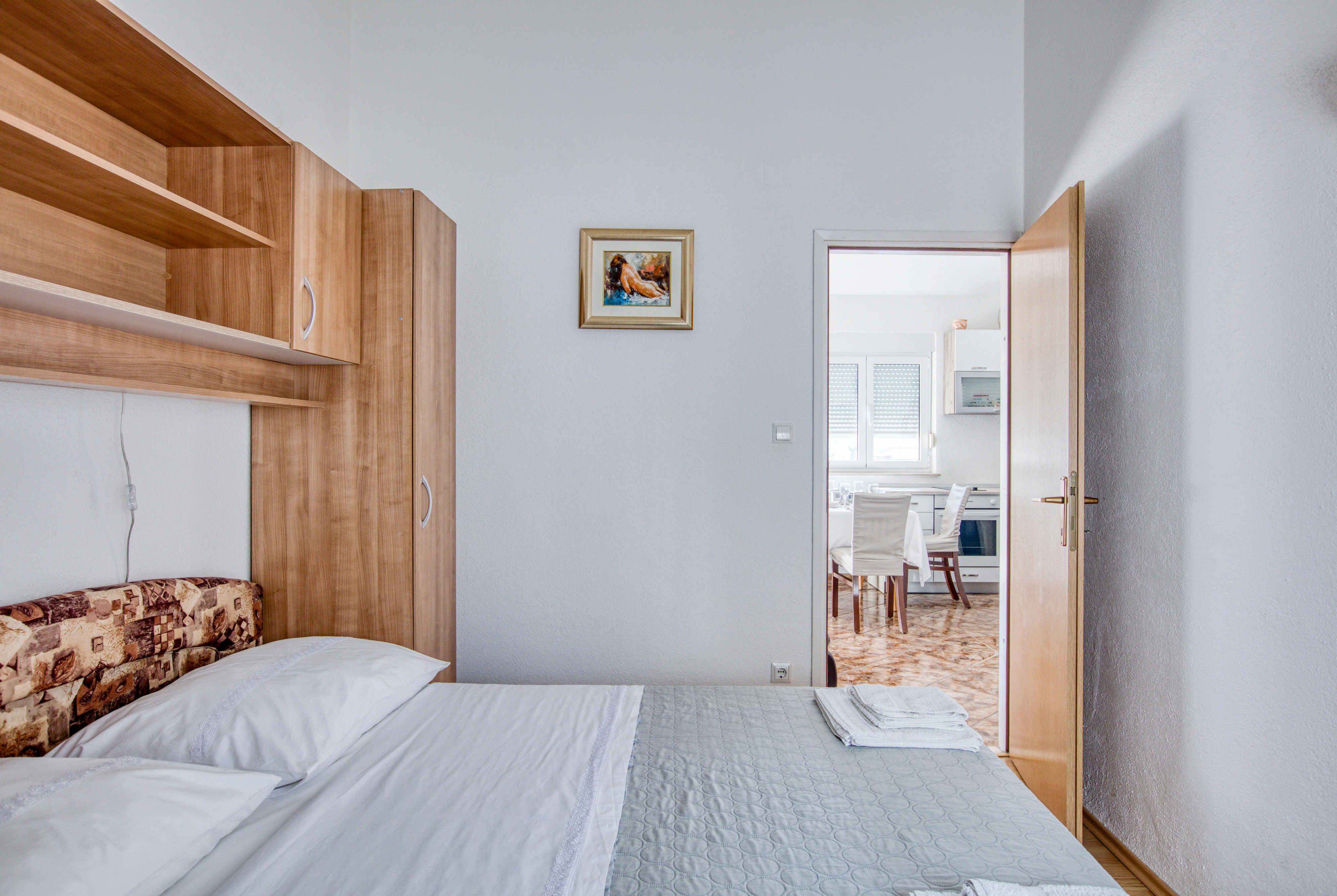 Apartament może przyjąć 4 gości. Łóżka znajdują się w sypialniach, których jest 2, na powierzchni 36m2. Goście mają dostęp do balkonu, by korzystać z ciepłych, letnich wieczorów. Z apartamentu roztacza się widok na morze. Możliwość przygotowywania posiłków poprzez korzystanie ze wspólnego grilla. Rezerwowana kwatera ma taras wspólny z inną kwaterą. WLICZONE W CENĘ: taksa pobytowa, sprzątanie końcowe, klimatyzacja, parking, internet, pranie bielizny, łóżeczko dziecięce, żelazko, suszarka do włosów, parasol. OBOWIĄZKOWE KOSZTY DODATKOWE: dopłata za krótki termin (procent dopłaty w zalezności od liczby noclegów: 30% - 1, 20% - 2, 10% - 3). Dostępność dodatkowych usług w rezerwowanym terminie oraz ich cenę (jeśli nie jest podana) należy sprawdzić wcześniej. Za dodatowe usługi, które nie zostały uwzględnione w kalkulacji ceny, płaci się bezpośrednio właścicielowi obiektu, pod warunkiem śe gość korzysta z tych usług.