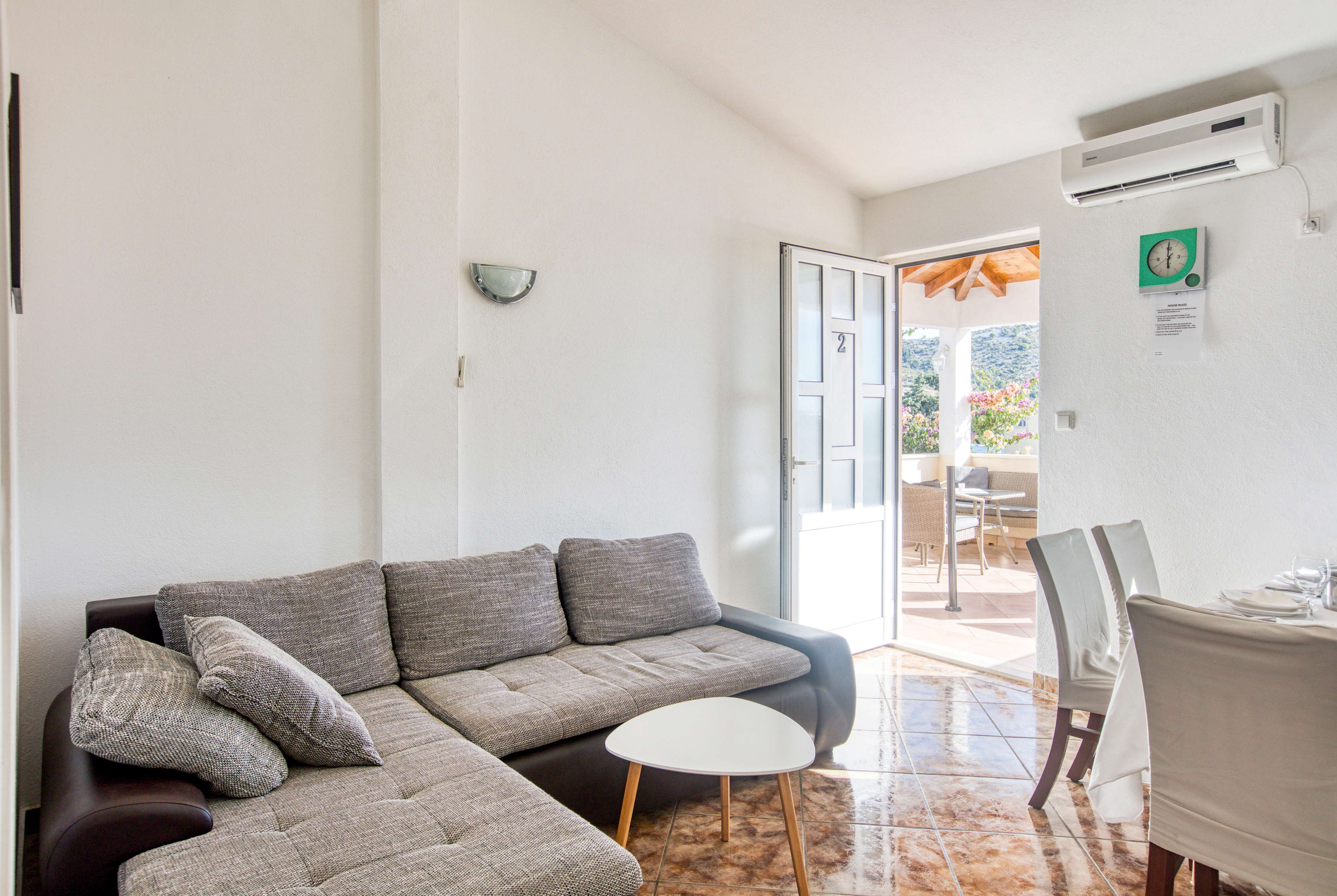Obiekt 2895 w mieście Rogoznica, Rogoznica - Północna Dalmacja ma kwatery typu Apartament (3) i oddalona jest 130 m od morza. Plaża najbliższa obiektowi jest żwirowa. W obiekcie istnieje więcej apartamentów, w których prawdopodobnie będą przebywać także inni goście w czasie Państwa wakacji. W czasie Państwa pobytu gospodarze będą przebywać w obiekcie. Właściciel nie ma obowiązku przyjąć dodatkowych niezgłoszonych osób ani zwierząt domowych, dlatego też trzeba je wcześniej zgłosić.ZAWARTOŚĆ Podwórko (50m2), Parking (Liczba miejsc parkingowych: 6, Odległość od obiektu: Na podwórku), Grill: wspólny, WiFi Internet, Pranie bielizny, Suszarka do włosów, Żelazko, Parasol, Łóżeczko dziecięce LOKALIZACJA I DOSTĘP Ilość schodów od obiektu do plaży: 9 Możliwość dojazdu samochodem: Tak Obiekt znajduje się w relatywnie cichej okolicy Obiekt jest otoczony zielenią ODLEGŁOŚCI Morze: 130 m Plaża: 130 m Centrum: 700 m Sklep: 700 m Pierwsza pomoc: 9 km Apteka: 1,3 km Kantor: 650 m Bankomat: 650 m Informacje turystyczne: 850 m Lotnisko: 34 km Stacja benzynowa: 1,5 km Targ: 750 m
