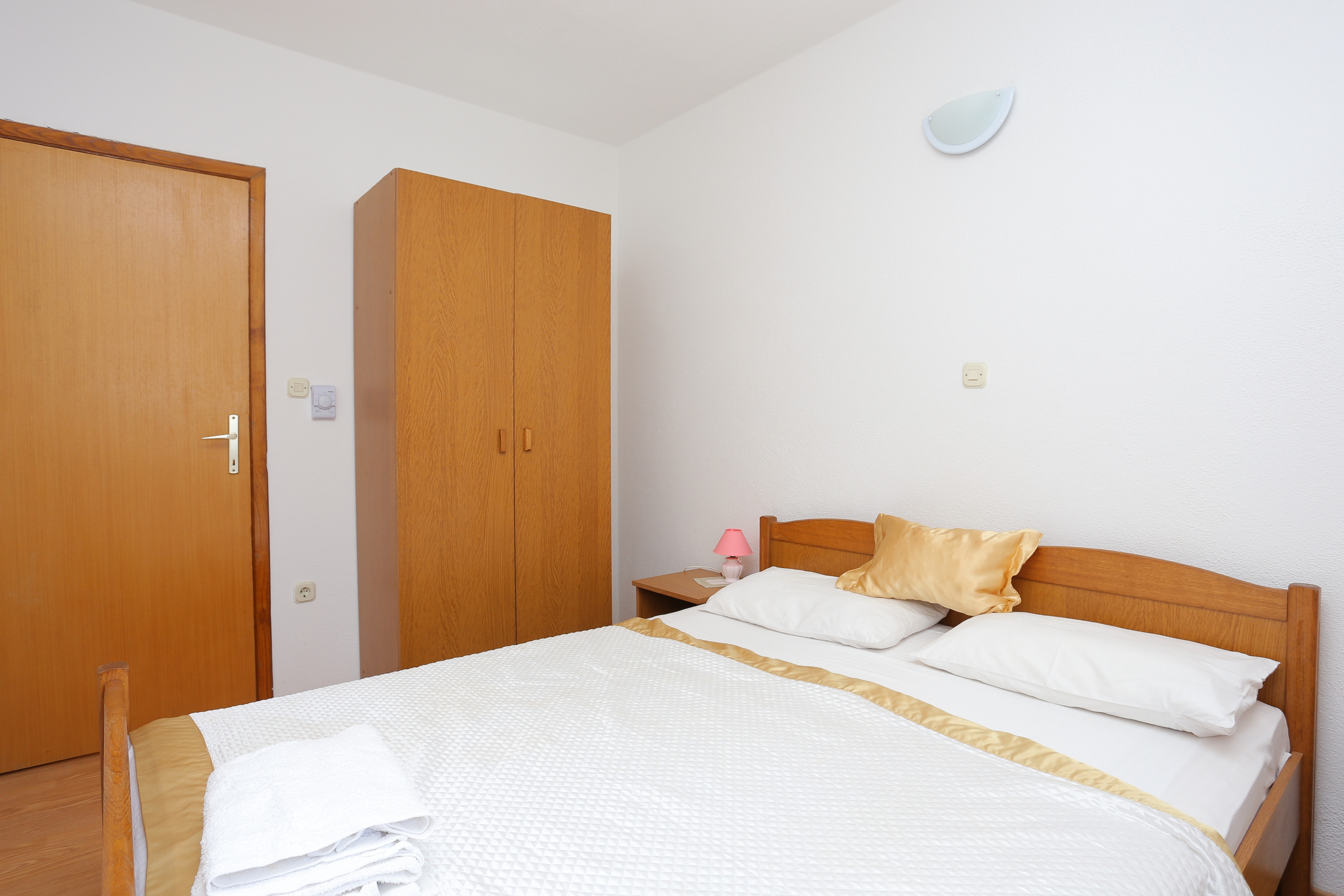 Apartament może przyjąć 6 gości. Łóżka znajdują się w sypialniach, których jest 2, oraz w jadalni, na powierzchni 45m2. Goście mają dostęp do tarasu, by korzystać z ciepłych, letnich wieczorów. Z apartamentu roztacza się widok na morze. Możliwość przygotowywania posiłków poprzez korzystanie ze wspólnego grilla. WLICZONE W CENĘ: taksa pobytowa, sprzątanie końcowe, klimatyzacja, parking, internet, łóżeczko dziecięce, żelazko, deska do prasowania. OBOWIĄZKOWE KOSZTY DODATKOWE: dopłata za krótki termin (procent dopłaty w zalezności od liczby noclegów: 30% - 1, 20% - 2, 10% - 3). NIEOBOWIĄZKOWE KOSZTY DODATKOWE: pranie bielizny (1,00 € pranie). Dostępność dodatkowych usług w rezerwowanym terminie oraz ich cenę (jeśli nie jest podana) należy sprawdzić wcześniej. Za dodatowe usługi, które nie zostały uwzględnione w kalkulacji ceny, płaci się bezpośrednio właścicielowi obiektu, pod warunkiem śe gość korzysta z tych usług.