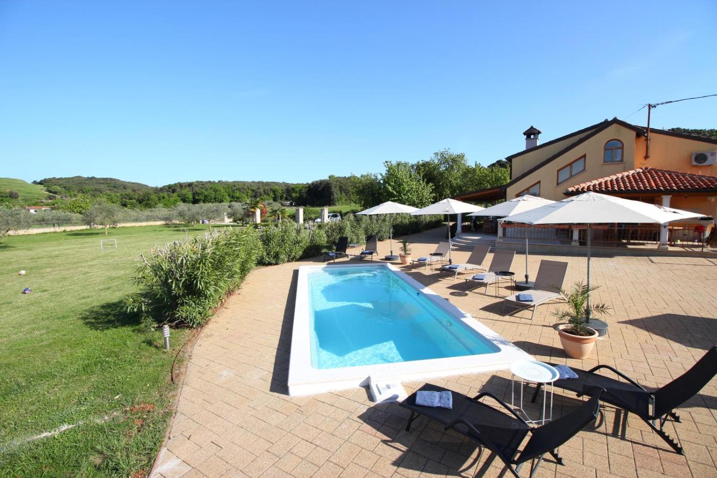 W domu wakacyjnym zapewniono taras, kilka sypialni (3), salon, kuchnię ze standardowym wyposażeniem, a także kilka łazienek (3) z bidetem i prysznicem. Goście mogą podziwiać widok na basen. Wyposażenie obejmuje też telewizor z płaskim ekranem z dostępem do kanałów satelitarnych. W domu wakacyjnym zapewniono ręczniki i pościel.