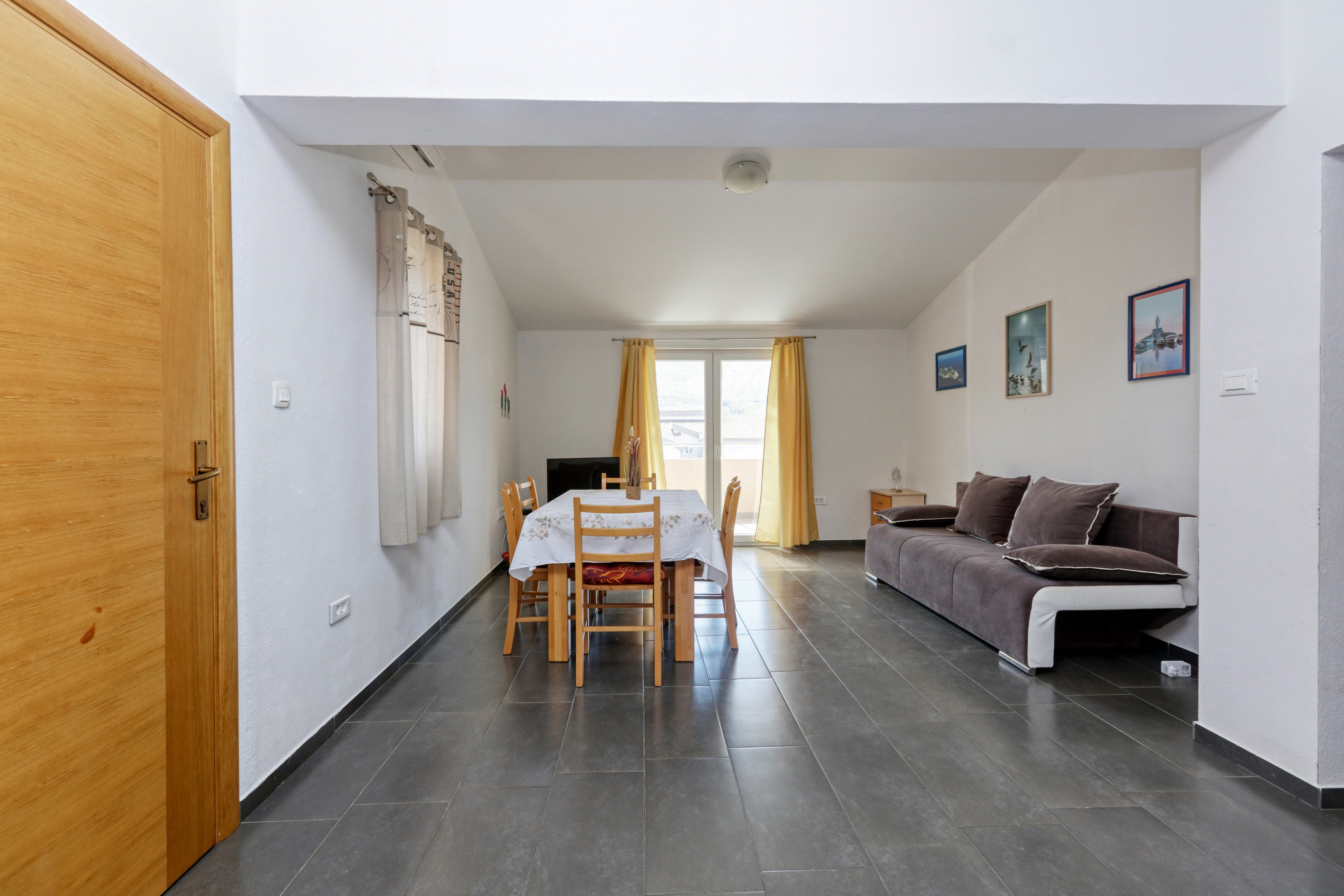 Apartament może przyjąć 6 gości. Łóżka znajdują się w sypialniach, których jest 2, oraz w pokoju dziennym, na powierzchni 52m2. Goście mają dostęp do balkonu, by korzystać z ciepłych, letnich wieczorów. Z apartamentu roztacza się widok na morze. Możliwość przygotowywania posiłków poprzez korzystanie ze wspólnego grilla. Do kwatery można przyjechać ze zwierzęciem domowym, a usługa jest wliczona w cenę wynajęcia kwatery. WLICZONE W CENĘ: taksa pobytowa, sprzątanie końcowe, klimatyzacja, parking, internet, zwierzęta domowe, dostawka, żelazko, deska do prasowania, suszarka do włosów. Dostępność dodatkowych usług w rezerwowanym terminie oraz ich cenę (jeśli nie jest podana) należy sprawdzić wcześniej. Za dodatowe usługi, które nie zostały uwzględnione w kalkulacji ceny, płaci się bezpośrednio właścicielowi obiektu, pod warunkiem śe gość korzysta z tych usług. Zniżki od ceny podstawowej: bezpłatny dzień 14=13 (przy pobycie, trwającym co najmniej 14 dni, otrzymujecie jeden bezpłatny dzień na pobyt do 31.12.2026).