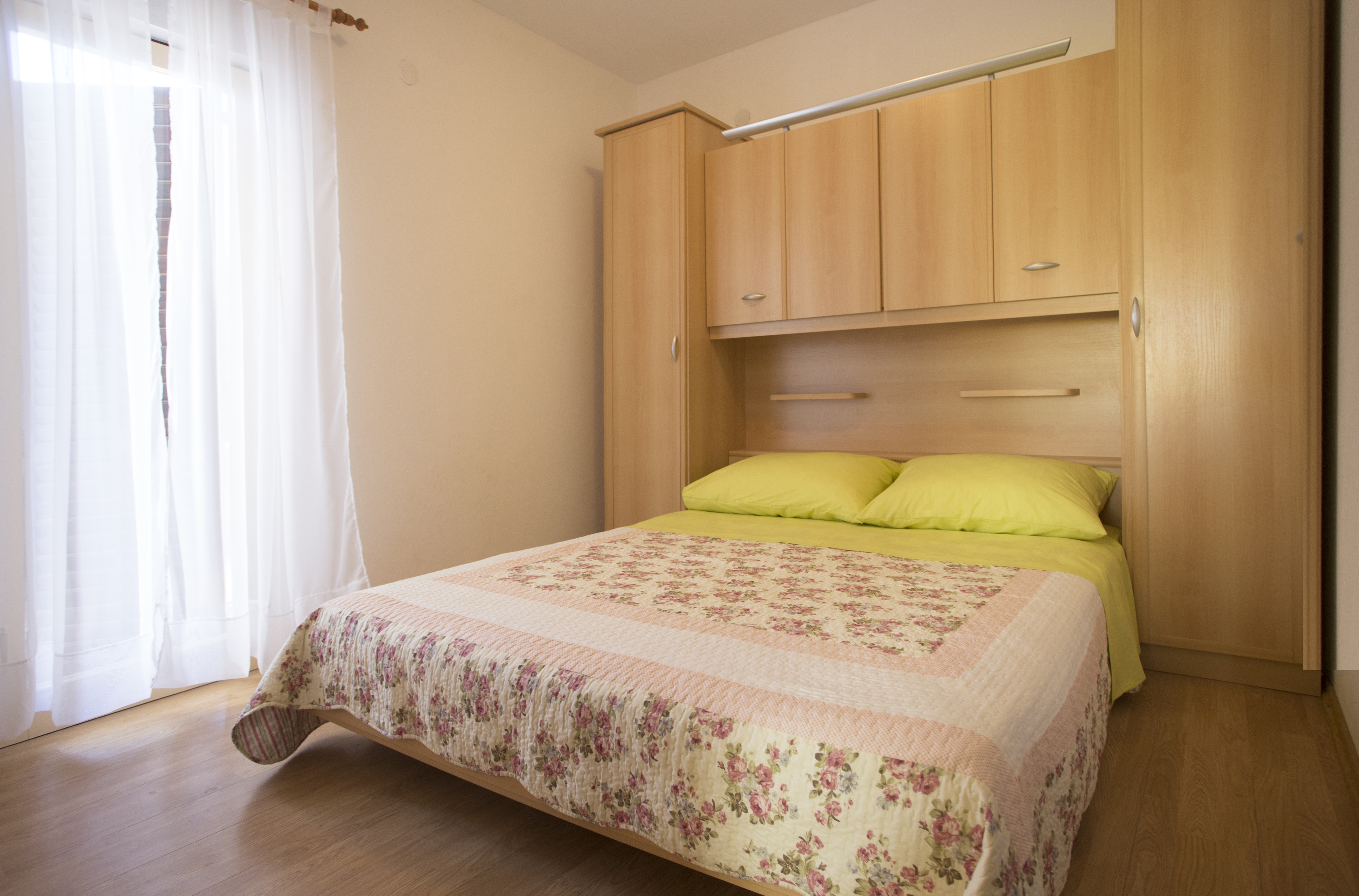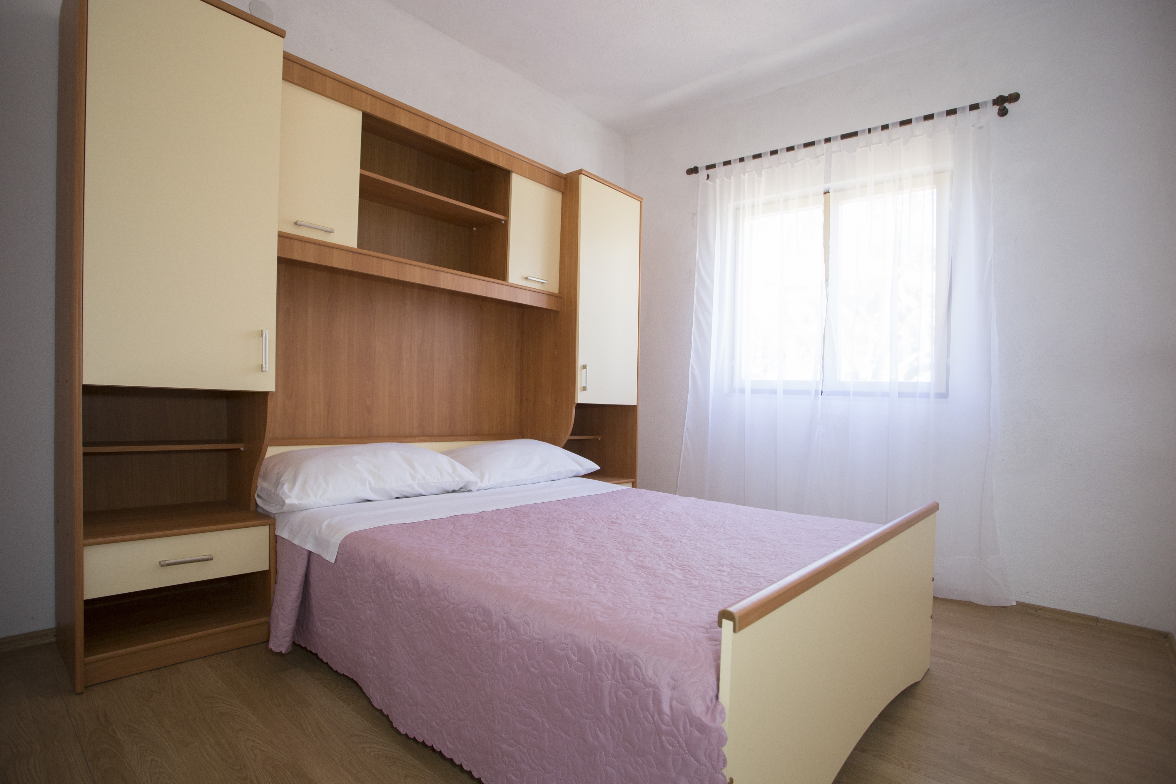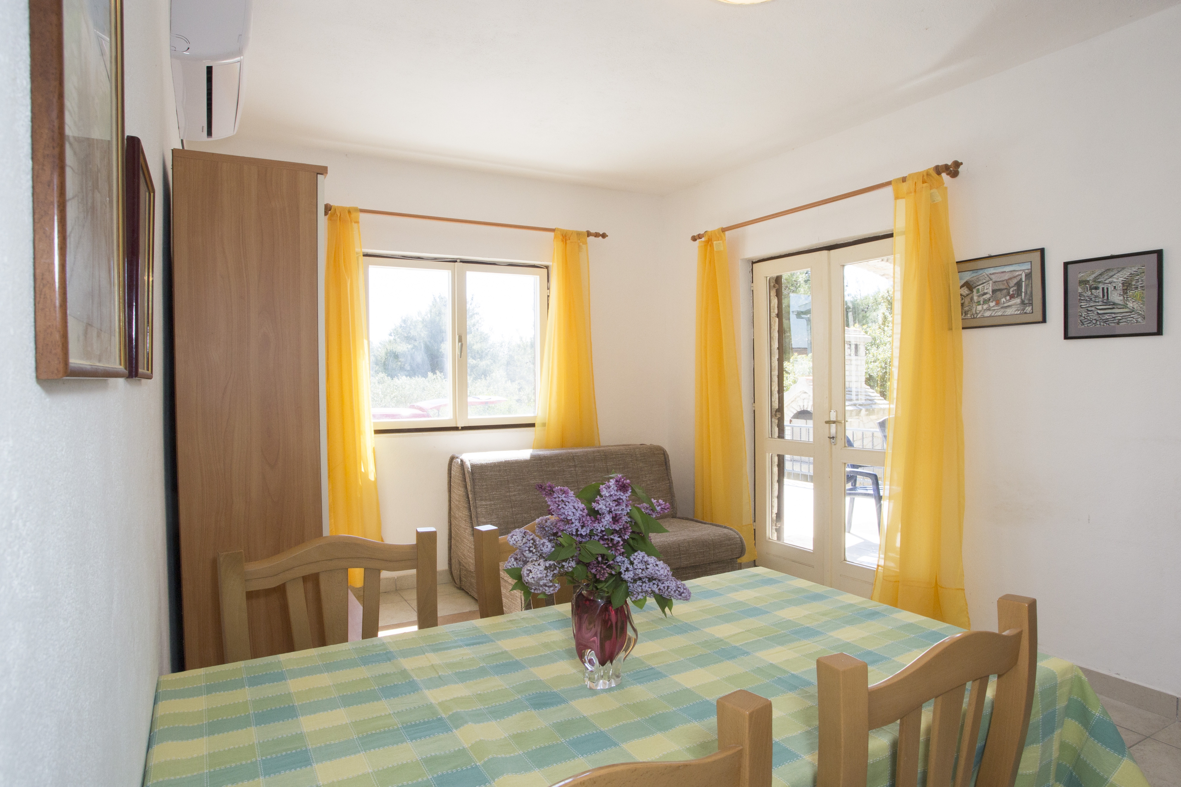 Apartament może przyjąć 5 gości. Łóżka znajdują się w sypialniach, których jest 2, oraz w pokoju dziennym, na powierzchni 47m2. Goście mają dostęp do tarasu, by korzystać z ciepłych, letnich wieczorów. Z apartamentu roztacza się widok na morze. Możliwość przygotowywania posiłków poprzez korzystanie ze wspólnego grilla. WLICZONE W CENĘ: taksa pobytowa, sprzątanie końcowe, klimatyzacja, parking, internet, żelazko, deska do prasowania, suszarka do włosów, parasol, leżaki. Dostępność dodatkowych usług w rezerwowanym terminie oraz ich cenę (jeśli nie jest podana) należy sprawdzić wcześniej. Za dodatowe usługi, które nie zostały uwzględnione w kalkulacji ceny, płaci się bezpośrednio właścicielowi obiektu, pod warunkiem śe gość korzysta z tych usług.