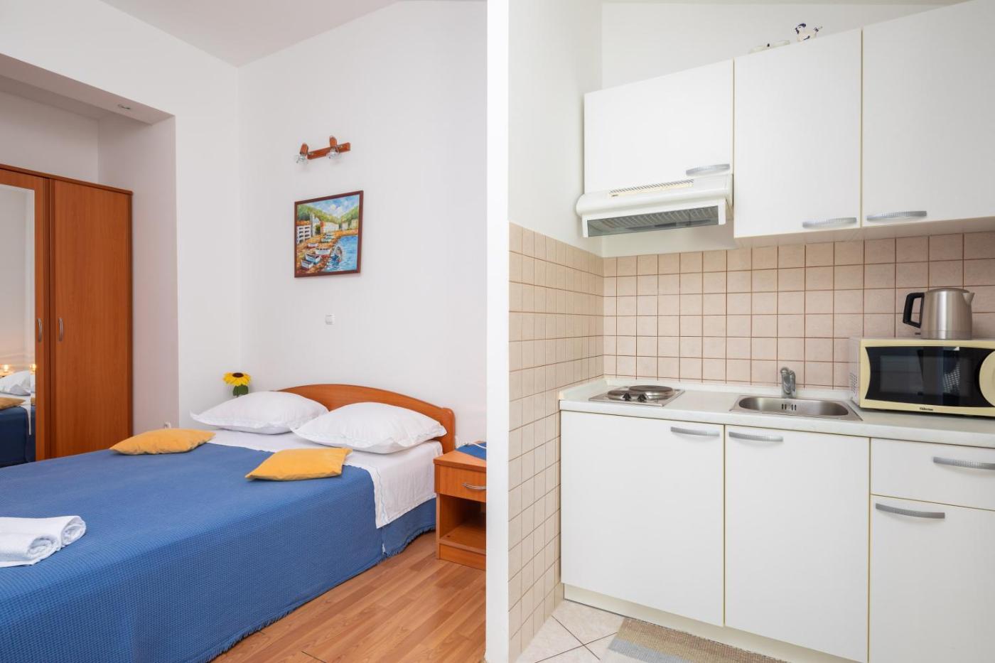 Studio. Guests will find a stovetop, a refrigerator, kitchenware and a microwave in the well-fitted kitchenette. The studio also offers a barbecue. The studio provides air conditioning, a private entrance, a balcony with sea views as well as a private bathroom featuring a shower. The unit offers 2 beds. Studio - 3 osobowy. Powierzchnia pokoju ok.: 30 mkw.