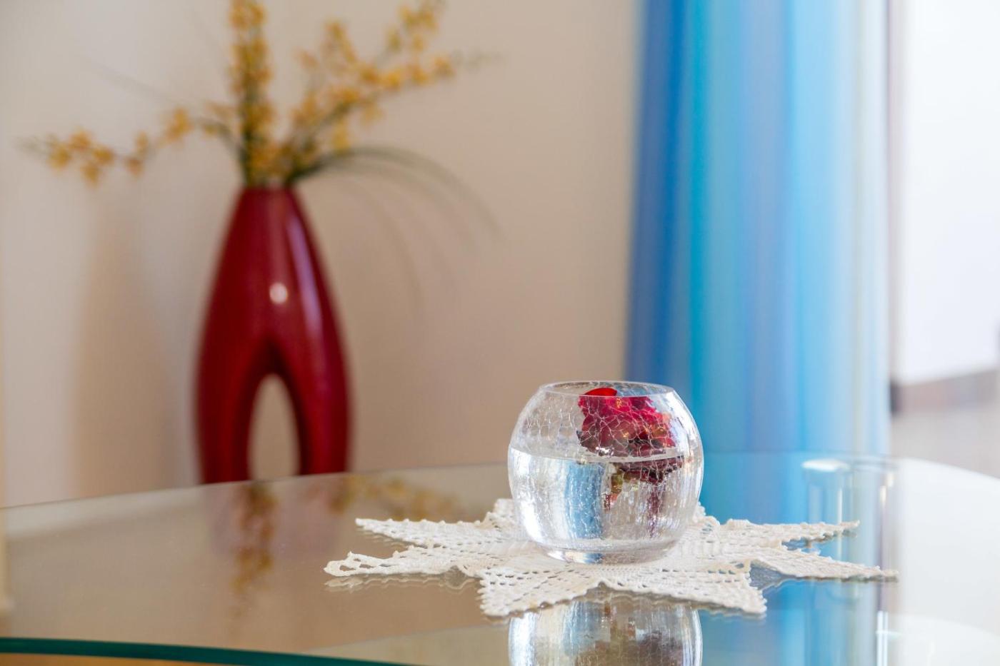 Apartament z 2 sypialniami, tarasem i widokiem na morze. This modern air-conditioned apartment offers: - a terrace with views of the sea - kitchen facilities including kitchenware, a microwave and a fridge - a living room with an LCD TV and a sofa bed that sleeps 2 people - bathroom with shower and free toiletries - an additional toilet Please note that the room rate is based on 4 guests. Maximum occupancy is 6 guests (see Extra Bed Rates). Apartament - 6 osobowy. Powierzchnia pokoju ok.: 92 mkw. ;