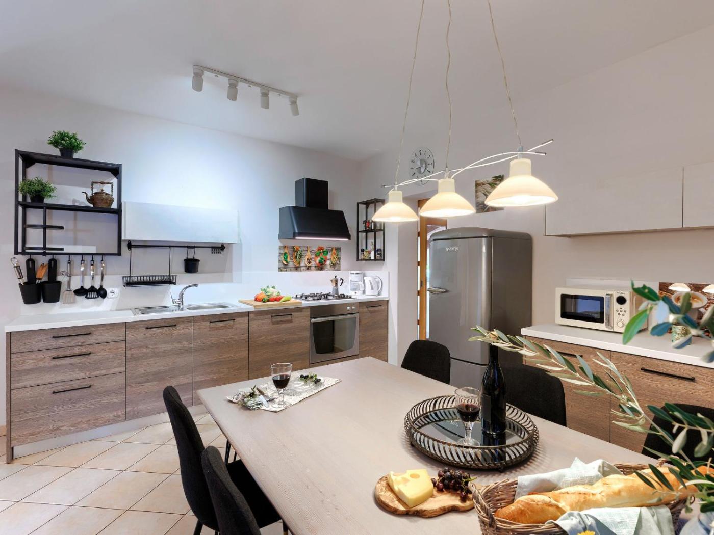W willi do dyspozycji gości przygotowano kilka sypialni (3), kuchnię ze standardowym wyposażeniem, takim jak lodówka i zmywarka, a także kilka łazienek (2) z prysznicem. Wyposażenie obejmuje także telewizor z dostępem do kanałów satelitarnych.