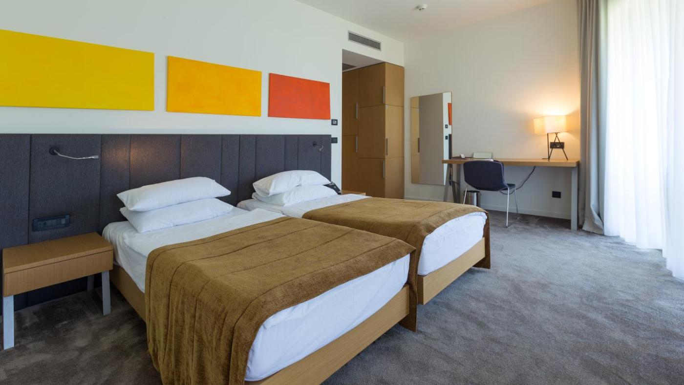 Oferta Specjalna - Pokój Dwuosobowy typu Premium z pakietemInclusive Light. This special offer includes: • Accommodation in a Premium Double Room with 1 additional bed • Breakfast, lunch (snack buffet) and dinner buffet with special buffet offer for children at Restaurant Lati • Unlimited beer, wine and juices for lunch and dinner • 1 child up to 12 years old free on extra bed and 1 child up to 5 years old free in existing bed • Free entrance to swimming pools Water planet • 1 x free entrance to pools of Wellness centre Termalija in Terme Olimia • 1x per stay entrance to the biggest sauna world in Croatia • Use ofsports facilities free of charge • Night swimming at the Water planet on Saturdays until 2 AM • Daily programme filled with sports activities • Cultural events and entertainment, animation programme • Animation programme with mascot “Tuhi” • Free Wi-Fi Pokój Dwuosobowy z 1 lub 2 łóżkami - 2 osobowy. Powierzchnia pokoju ok.: 26 mkw. ;