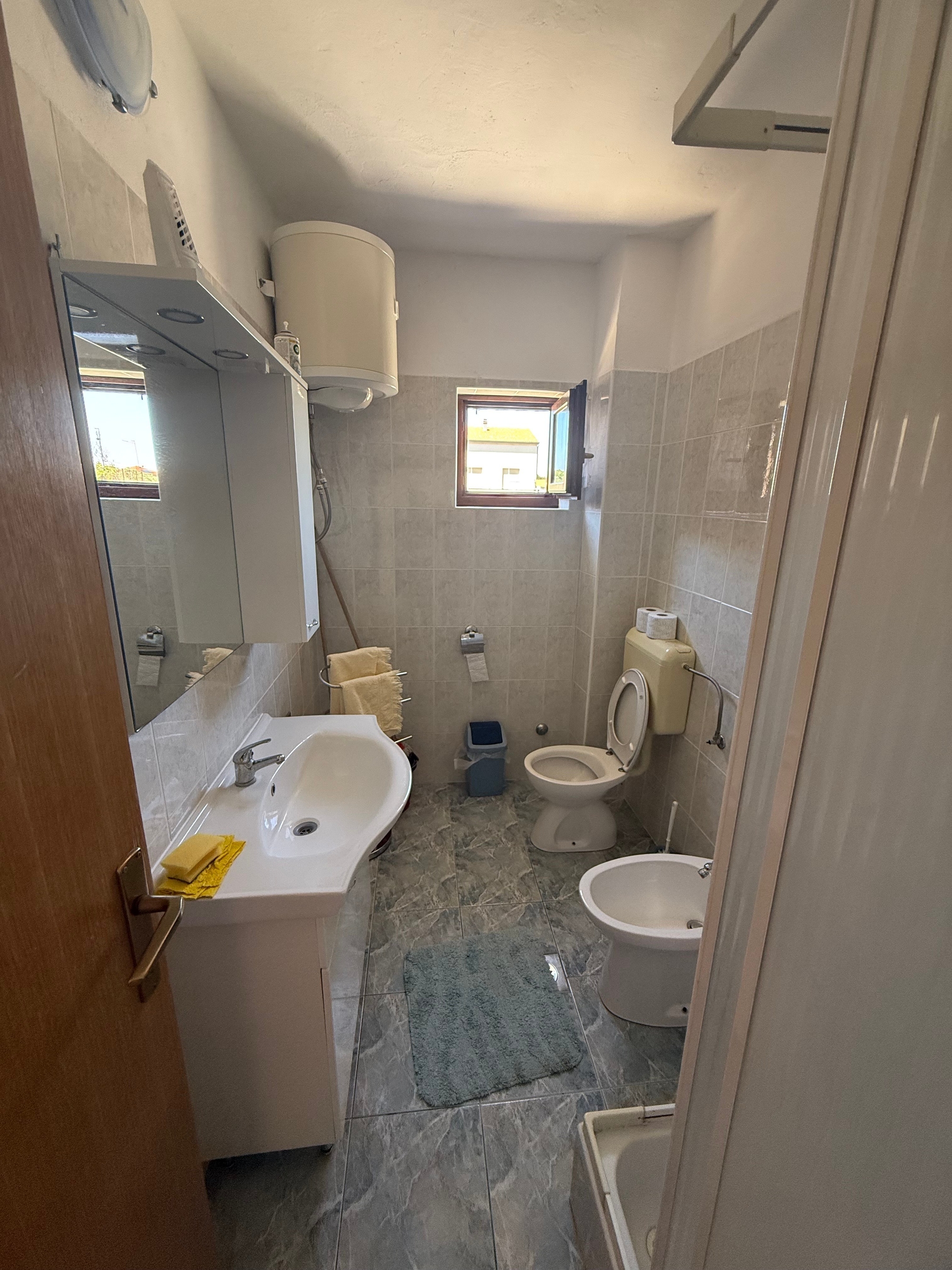 Apartament może przyjąć 4 gości. Łóżka znajdują się w sypialniach, których jest 1, oraz w pokoju dziennym, na powierzchni 33m2. Goście mają dostęp do tarasu, by korzystać z ciepłych, letnich wieczorów. Z apartamentu roztacza się widok na morze. Możliwość przygotowywania posiłków poprzez korzystanie ze wspólnego grilla. W kwaterze dozwolony jest pobyt zwierzęcia domowego, za dopłatą. WLICZONE W CENĘ: taksa pobytowa, sprzątanie końcowe, klimatyzacja, parking, internet, żelazko, deska do prasowania, suszarka do włosów. OBOWIĄZKOWE KOSZTY DODATKOWE: dopłata za krótki termin (procent dopłaty w zalezności od liczby noclegów: 30% - 1, 20% - 2, 10% - 3). NIEOBOWIĄZKOWE KOSZTY DODATKOWE: zwierzęta domowe (7,00 € za nocleg). Dostępność dodatkowych usług w rezerwowanym terminie oraz ich cenę (jeśli nie jest podana) należy sprawdzić wcześniej. Za dodatowe usługi, które nie zostały uwzględnione w kalkulacji ceny, płaci się bezpośrednio właścicielowi obiektu, pod warunkiem śe gość korzysta z tych usług. Zniżki od ceny podstawowej: bezpłatny dzień 14=13 (przy pobycie, trwającym co najmniej 14 dni, otrzymujecie jeden bezpłatny dzień na pobyt do 31.12.2026).