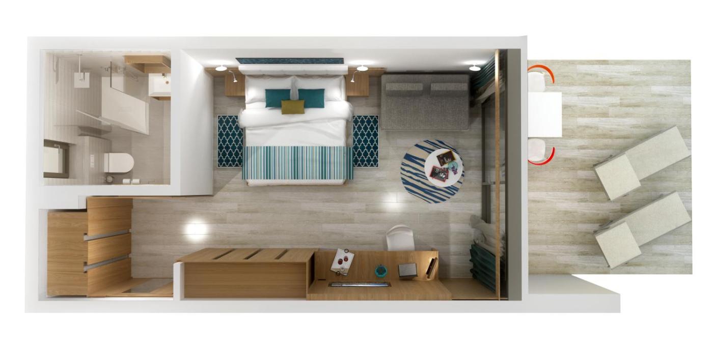 Apartament typu Premium Suite od strony morza. W apartamencie znajduje się sypialnia z łóżkiem podwójnym lub 2 łóżkami pojedynczymi. Apartament typu Suite - 4 osobowy. Powierzchnia pokoju ok.: 32 mkw.