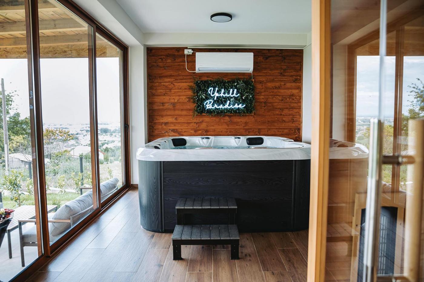 Zaplecze odnowy biologicznej obiektu Uphill Paradise obejmuje saunę i wannę z hydromasażem.