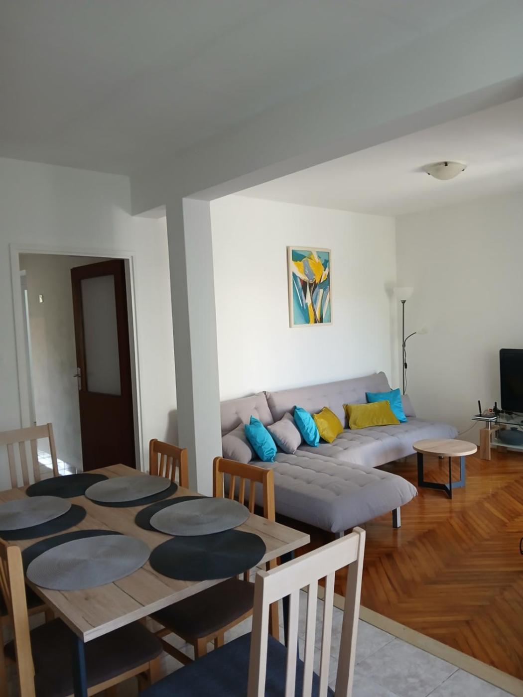 Apartament z 3 sypialniami. This spacious apartment features 1 living room, 3 separate bedrooms and 1 bathroom with a walk-in shower and a hairdryer. Guests can make meals in the kitchen that has a stovetop, a refrigerator, a dishwasher and kitchenware. The air-conditioned apartment features a flat-screen TV, a washing machine, a seating area, a dining area as well as sea views. The unit has 3 beds. Apartament - 6 osobowy. Powierzchnia pokoju ok.: 80 mkw.