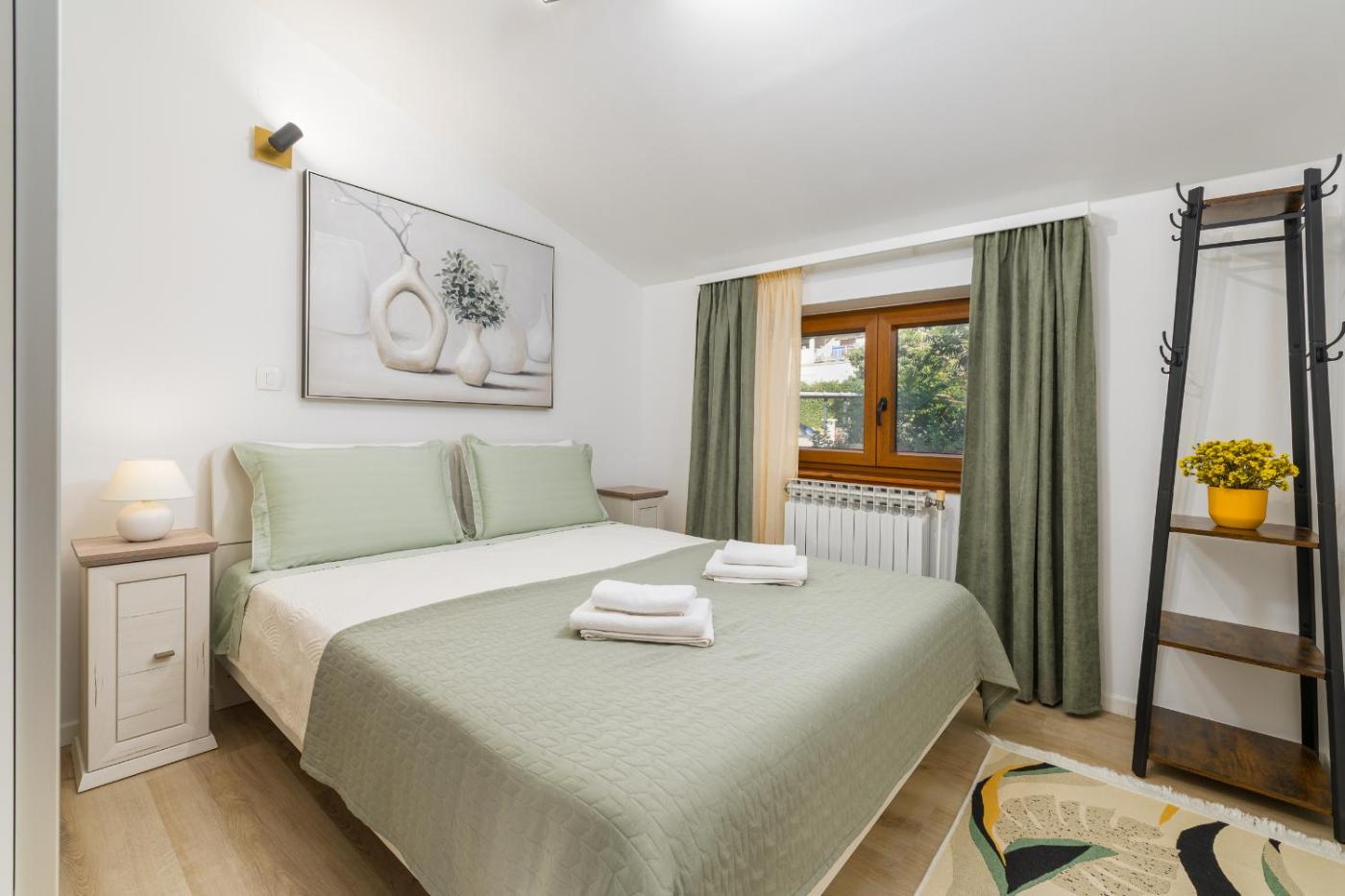 Apartament z 2 sypialniami i widokiem. Boasting a private entrance, this air-conditioned apartment includes a kitchen, 2 bedrooms and 1 bathroom with a shower and a hairdryer. Guests can make meals in the kitchen that is fitted with a stovetop, a refrigerator, a dishwasher and kitchenware. The apartment offers a washing machine, a tea and coffee maker, a seating area, a flat-screen TV with streaming services, as well as garden views. The unit has 3 beds. Apartament - 4 osobowy. Powierzchnia pokoju ok.: 60 mkw.