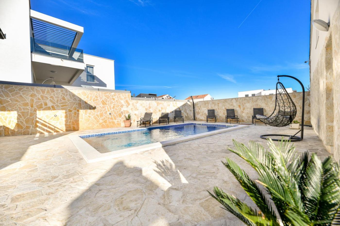 Obiekt Crowonder Villa Smile with Swimming Pool and Stone Backyard, położony w miejscowości Vir, oferuje bezpłatne Wi-Fi, klimatyzację, odkryty basen oraz ogród. Odległość ważnych miejsc od obiektu: Plaża Pedinka – 1,3 km, Palace of the Governor General – 30 km. Do dyspozycji Gości jest patio. Z okien roztacza się widok na basen.