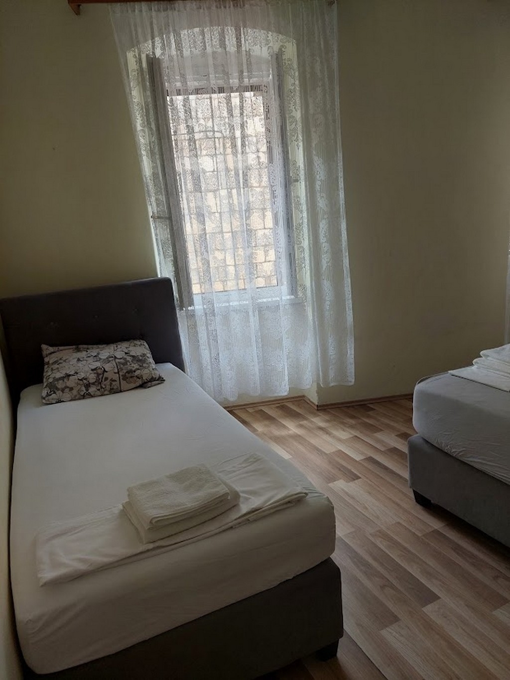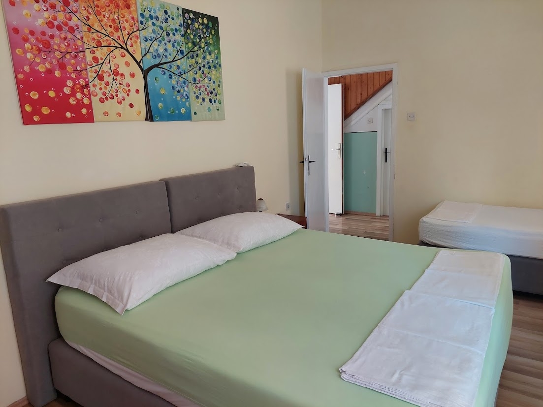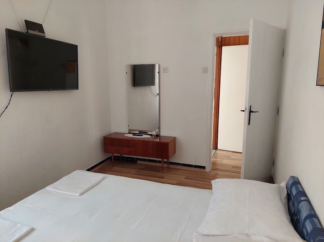 Apartament może przyjąć 5 gości. Łóżka znajdują się w sypialniach, których jest 2, na powierzchni 35m2. Goście mają dostęp do tarasu, by korzystać z ciepłych, letnich wieczorów. Możliwość przygotowywania posiłków poprzez korzystanie ze wspólnego grilla. WLICZONE W CENĘ: taksa pobytowa, sprzątanie końcowe, klimatyzacja, parking, internet, pranie bielizny, żelazko, deska do prasowania, suszarka do włosów, przenośny grill, parasol. Dostępność dodatkowych usług w rezerwowanym terminie oraz ich cenę (jeśli nie jest podana) należy sprawdzić wcześniej. Za dodatowe usługi, które nie zostały uwzględnione w kalkulacji ceny, płaci się bezpośrednio właścicielowi obiektu, pod warunkiem śe gość korzysta z tych usług. Zniżki od ceny podstawowej: bezpłatny dzień 14=13 (przy pobycie, trwającym co najmniej 14 dni, otrzymujecie jeden bezpłatny dzień na pobyt do 31.12.2026).