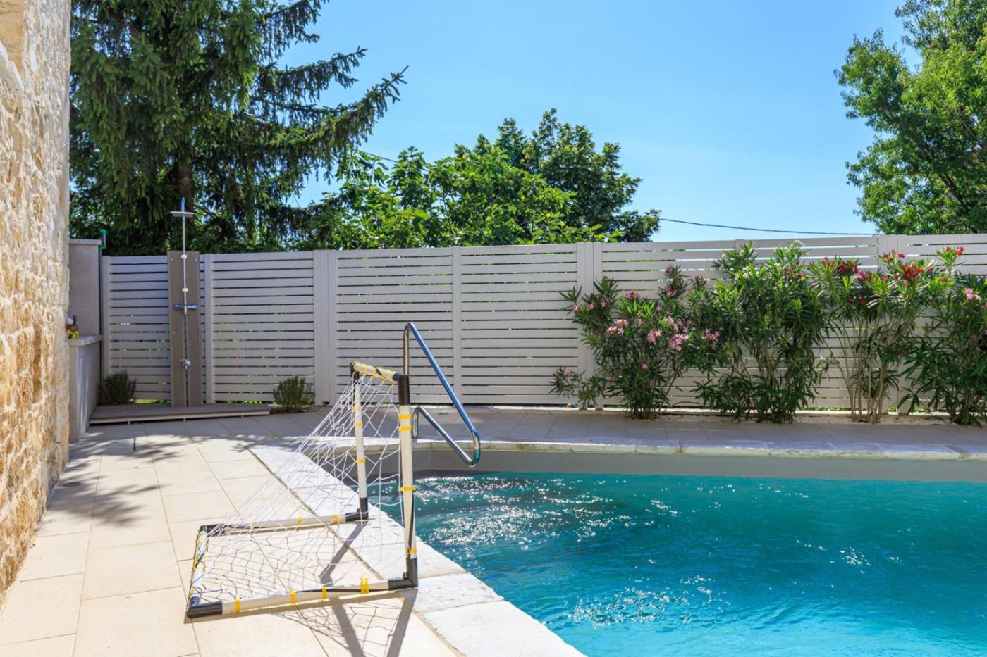 Dom wakacyjny. Guests will have a special experience as the holiday home offers a private pool. Featuring a private entrance, this air-conditioned holiday home consists of 1 living room, 3 separate bedrooms and 2 bathrooms with a walk-in shower and a bath. Guests will find a stovetop, a refrigerator, a dishwasher and kitchenware in the well-fitted kitchen. The holiday home also offers a barbecue. The spacious holiday home provides a washing machine, a coffee machine, a seating area, a TV with satellite channels, as well as garden views. The unit offers 4 beds. Dom wakacyjny - 6 osobowy. Powierzchnia pokoju ok.: 150 mkw.