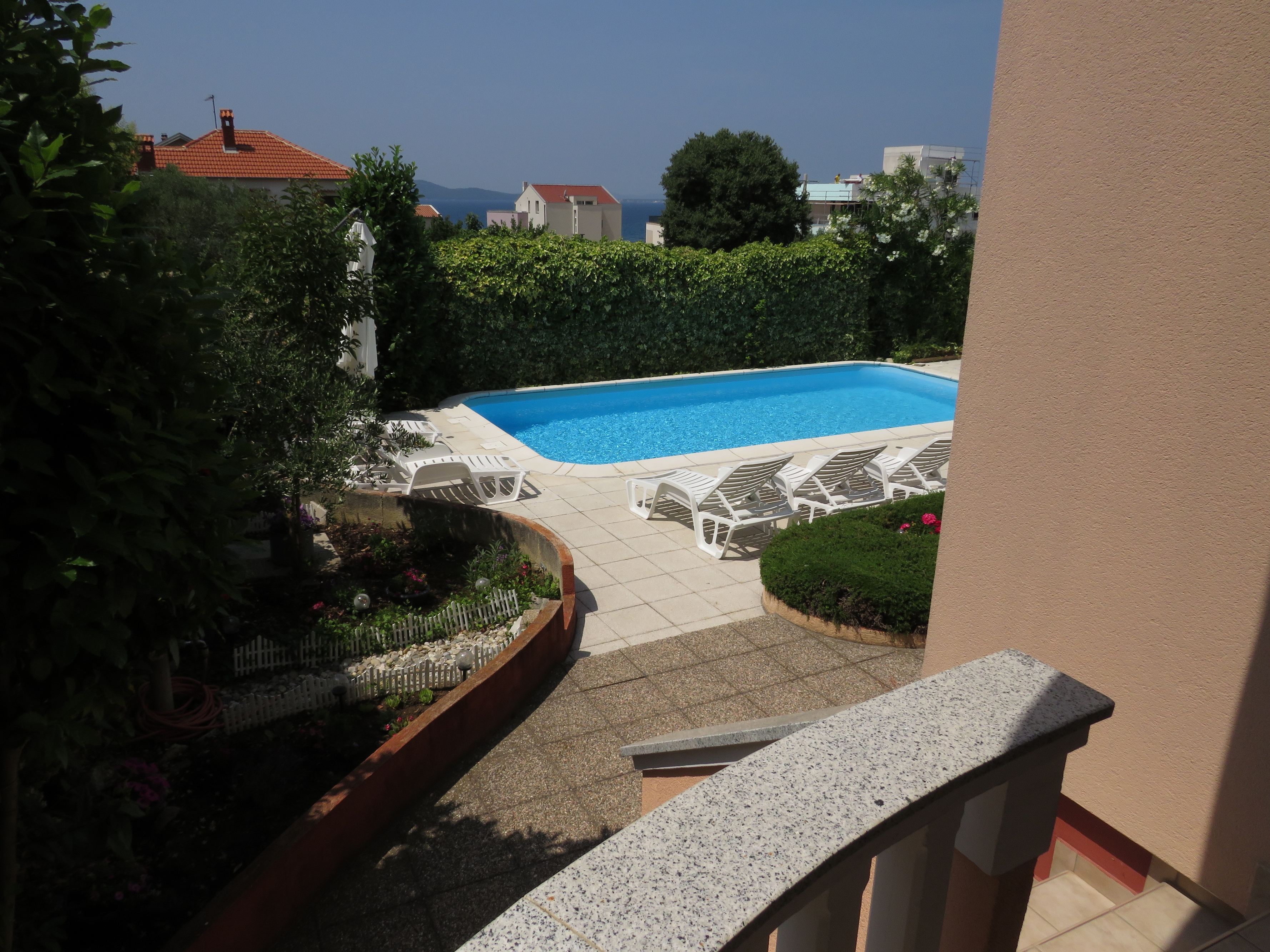 Obiekt 5774 w miejscowości Zadar - Diklo, Zadar - Północna Dalmacja ma kwatery typu Apartament (4) i jest oddalony 400 m od morza. Plaża najbliższa obiektowi jest żwirowa. Ten obiekt znajduje się w kategorii "Obiekty z basenem". Ponieważ w obiekcie znajduje się więcej apartamentów, prawdopodobnie w czasie Państwa pobytu w obiekcie będą przebywać także inni goście. Właściciele będą w czasie Państwa urlopu obecni w obiekcie. Właściciel nie ma obowiązku przyjąć dodatkowych niezgłoszonych osób ani zwierząt domowych, dlatego też trzeba je wcześniej zgłosić.ZAWARTOŚĆ Podwórko (200m2, Przestrzeń dla dzieci, Miejsce do siedzenia), Parking (Liczba miejsc parkingowych: 6, Odległość od obiektu: Na podwórku), Basen: wspólny, Rozmiary: 8m x 4m x 1.5m, Rodzaj wody: Słodka, Grill: wspólny, WiFi Internet, Suszarka do włosów, Żelazko, Deska do prasowania, Łóżeczko dziecięce LOKALIZACJA I DOSTĘP Obiekt nie znajduje się przy drodze Pomiędzy obiektem, a plażą znajduje się główna droga Możliwość dojazdu samochodem: Tak Obiekt znajduje się w relatywnie cichej okolicy Obiekt jest otoczony zielenią ODLEGŁOŚCI Morze: 400 m Plaża: 400 m Centrum: 5,5 km Sklep: 350 m Apteka: 1,4 km Bankomat: 350 m Informacje turystyczne: 350 m Lotnisko: 16 km Stacja benzynowa: 1,9 km Targ: 4,5 km