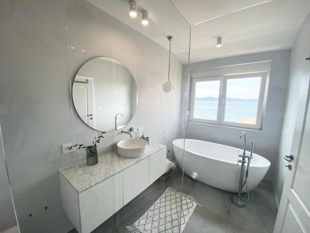 Apartament z widokiem na morze. Boasting a private entrance, this air-conditioned apartment features 1 living room, 3 separate bedrooms and 3 bathrooms with a bath and a shower. Guests will find a stovetop, a refrigerator, a dishwasher and kitchenware in the fully equipped kitchen. The apartment also comes with a barbecue. The spacious apartment features a washing machine, a tea and coffee maker, a seating area, a flat-screen TV with streaming services, as well as sea views. The unit has 3 beds. Apartament - 5 osobowy. Powierzchnia pokoju ok.: 100 mkw.