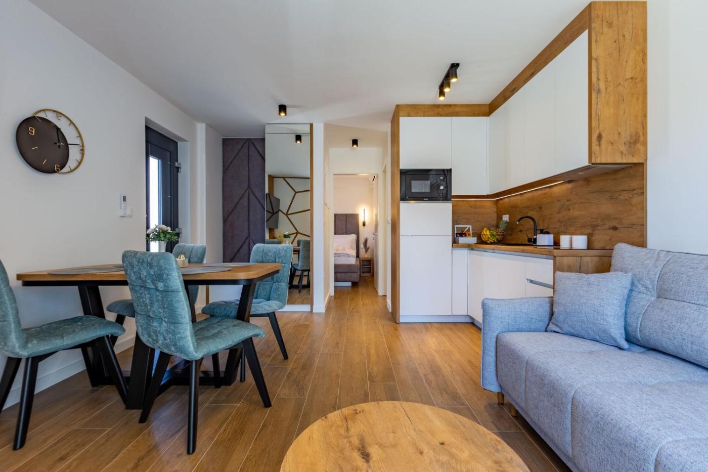 Apartament z 1 sypialnią. Featuring a private entrance, this air-conditioned apartment comprises 1 living room, 1 separate bedroom and 1 bathroom with a walk-in shower and a hairdryer. Guests can make meals in the kitchen that comes with a stovetop, a refrigerator, a dishwasher and kitchenware. Boasting a terrace with city views, this apartment also provides a washing machine and a flat-screen TV with cable channels. The unit offers 2 beds. Apartament - 3 osobowy. Powierzchnia pokoju ok.: 40 mkw. ;
