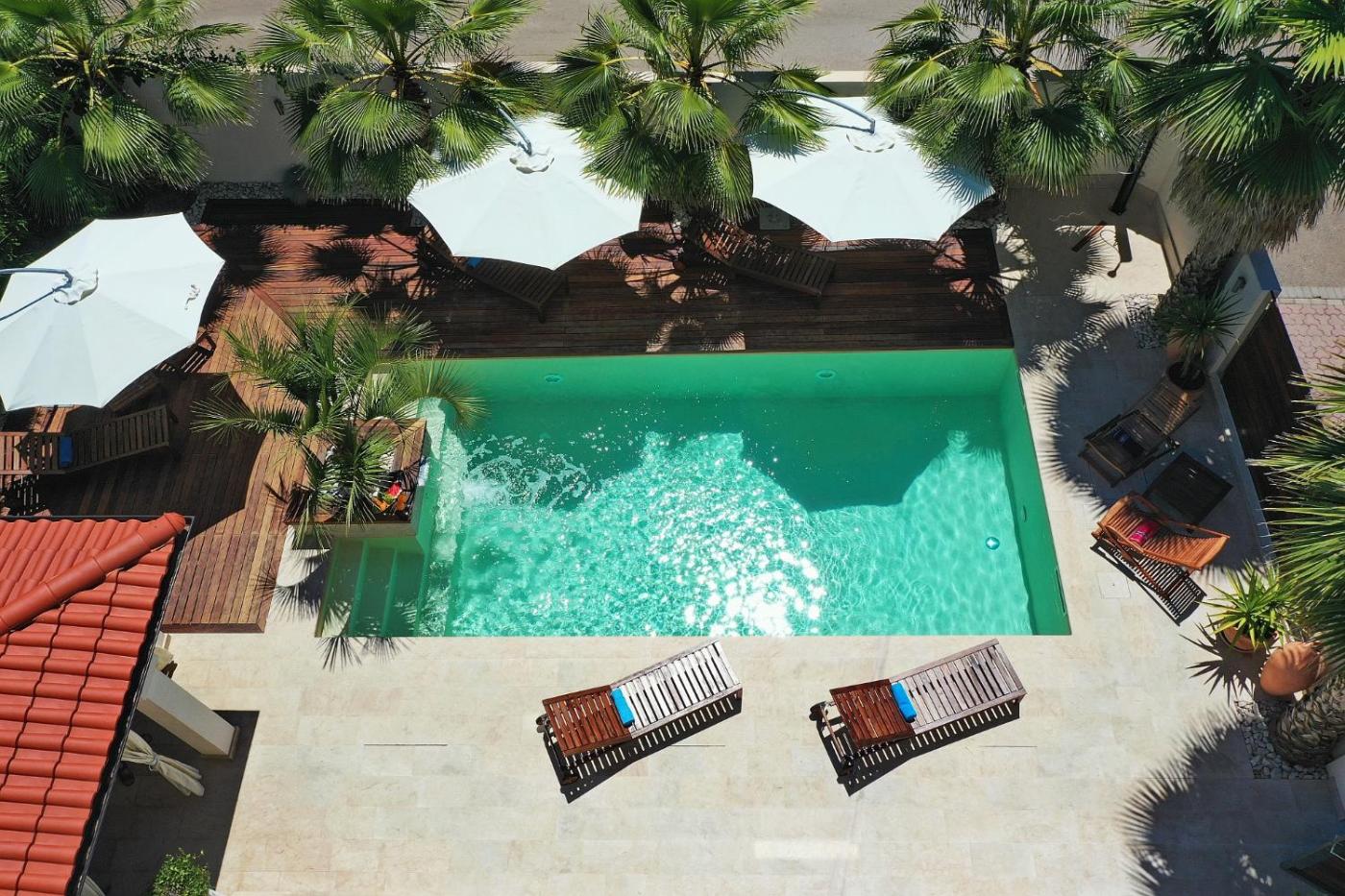 Willa typu Deluxe z basenem. Jest to klimatyzowana willa z 6 sypialniami, basenem i zadaszonym sprzętem do grillowania. Goście mają do dyspozycji 3 oddzielne kuchnie z jadalnią i dostępem do balkonu. Każdy pokój dysponuje łazienką i toaletą. Większość pokoi zapewnia dostęp do prywatnego balkonu. Willa - 11 osobowy. Powierzchnia pokoju ok.: 270 mkw.