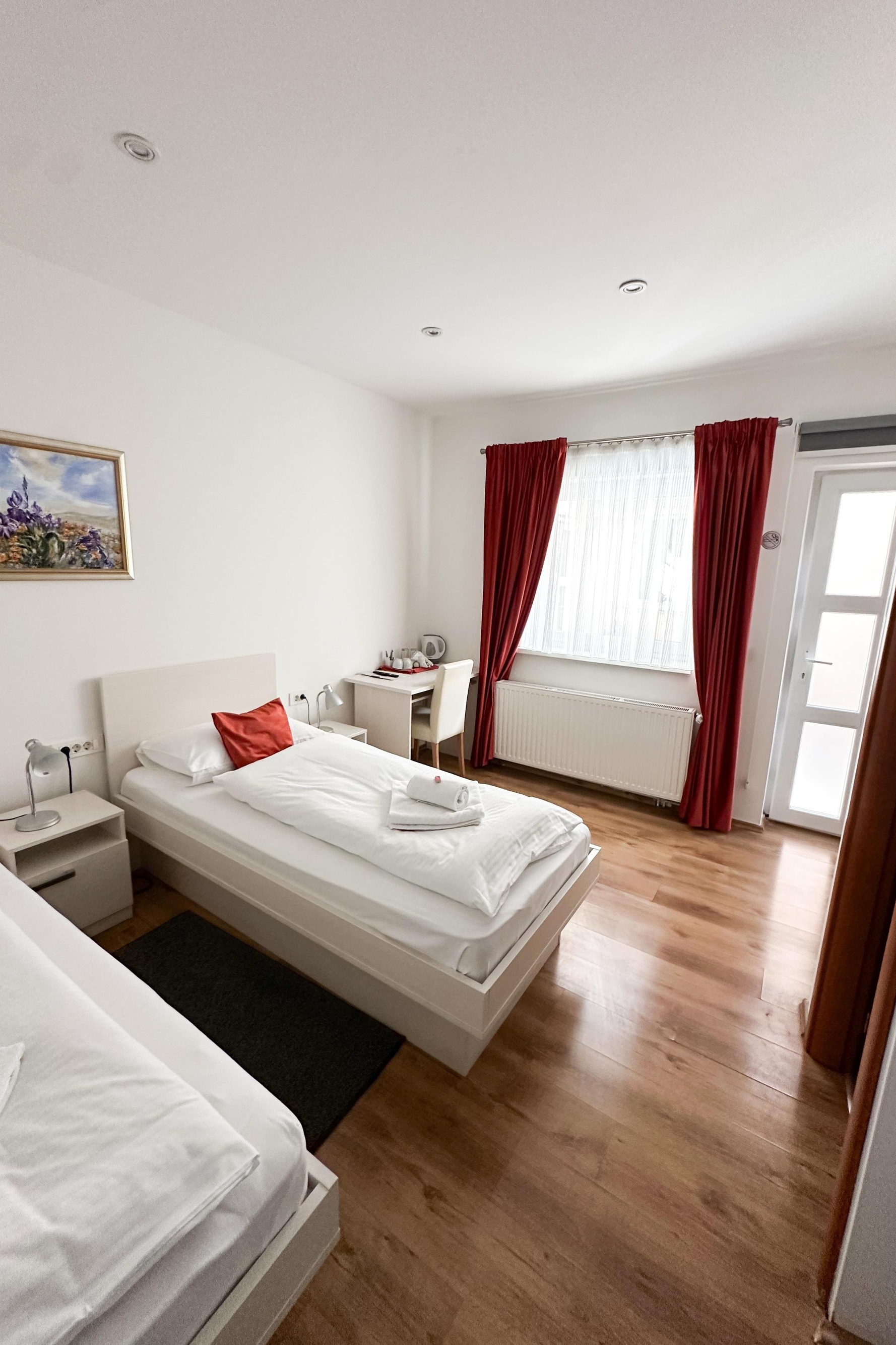 Pokój może przyjąć 2 gości. Łóżka znajdują się w sypialniach, których jest 1, na powierzchni 20m2. Możliwe jest korzystanie ze wspólnej kuchni. Rezerwowana kwatera to pokój z własną łazienką, z możliwością korzystania ze wspólnej kuchni bez dopłaty. Rezerwowana kwatera ma taras wspólny z inną kwaterą. Pomieszczenia rezerwowanej kwatery nie są połączone w jedną całość. WLICZONE W CENĘ: taksa pobytowa, sprzątanie końcowe, klimatyzacja, centralne ogrzewanie, wspólna kuchnia, internet, łóżeczko dziecięce, żelazko, deska do prasowania, suszarka do włosów. Dostępność dodatkowych usług w rezerwowanym terminie oraz ich cenę (jeśli nie jest podana) należy sprawdzić wcześniej. Za dodatowe usługi, które nie zostały uwzględnione w kalkulacji ceny, płaci się bezpośrednio właścicielowi obiektu, pod warunkiem śe gość korzysta z tych usług.