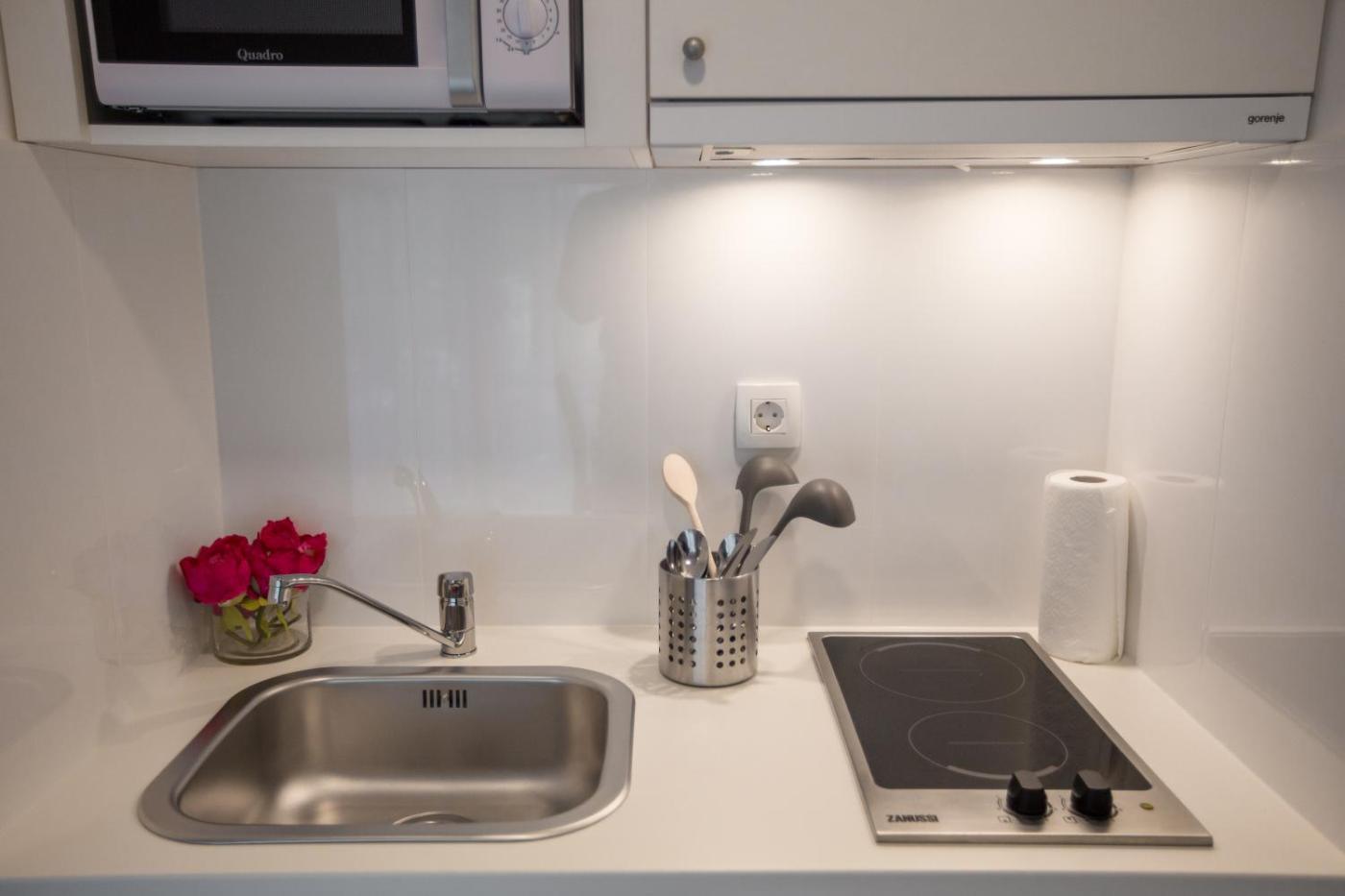 Studio. In the kitchen, guests will find a stovetop, a refrigerator, kitchenware and a microwave. This air-conditioned studio is comprised of a flat-screen TV with streaming services and a private bathroom. The unit has 1 bed. Studio - 2 osobowy. Powierzchnia pokoju ok.: 16 mkw. ;