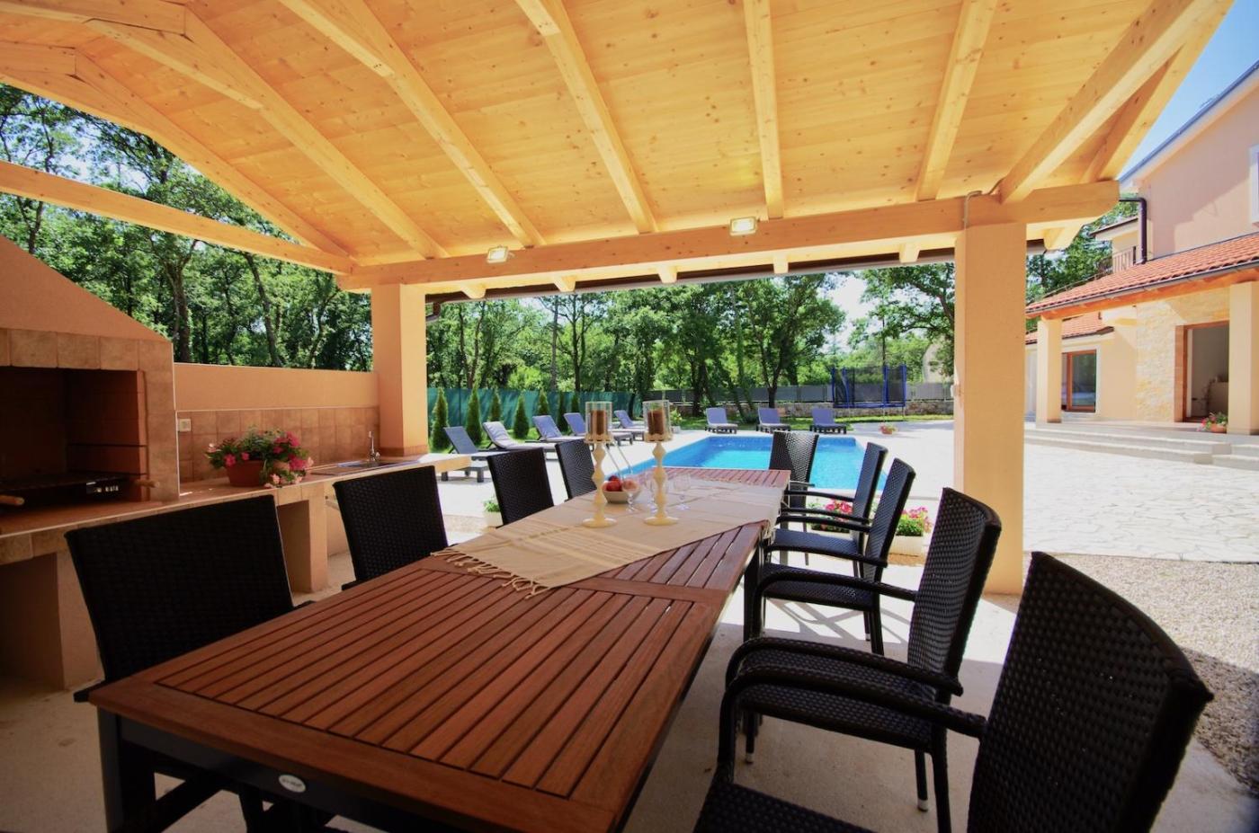 W willi zapewniono taras, kilka sypialni (5), salon, kuchnię ze standardowym wyposażeniem, a także kilka łazienek (5) z bidetem i prysznicem. Goście mogą podziwiać widok na basen. Wyposażenie obejmuje też telewizor z płaskim ekranem z dostępem do kanałów satelitarnych. W willi zapewniono ręczniki i pościel.